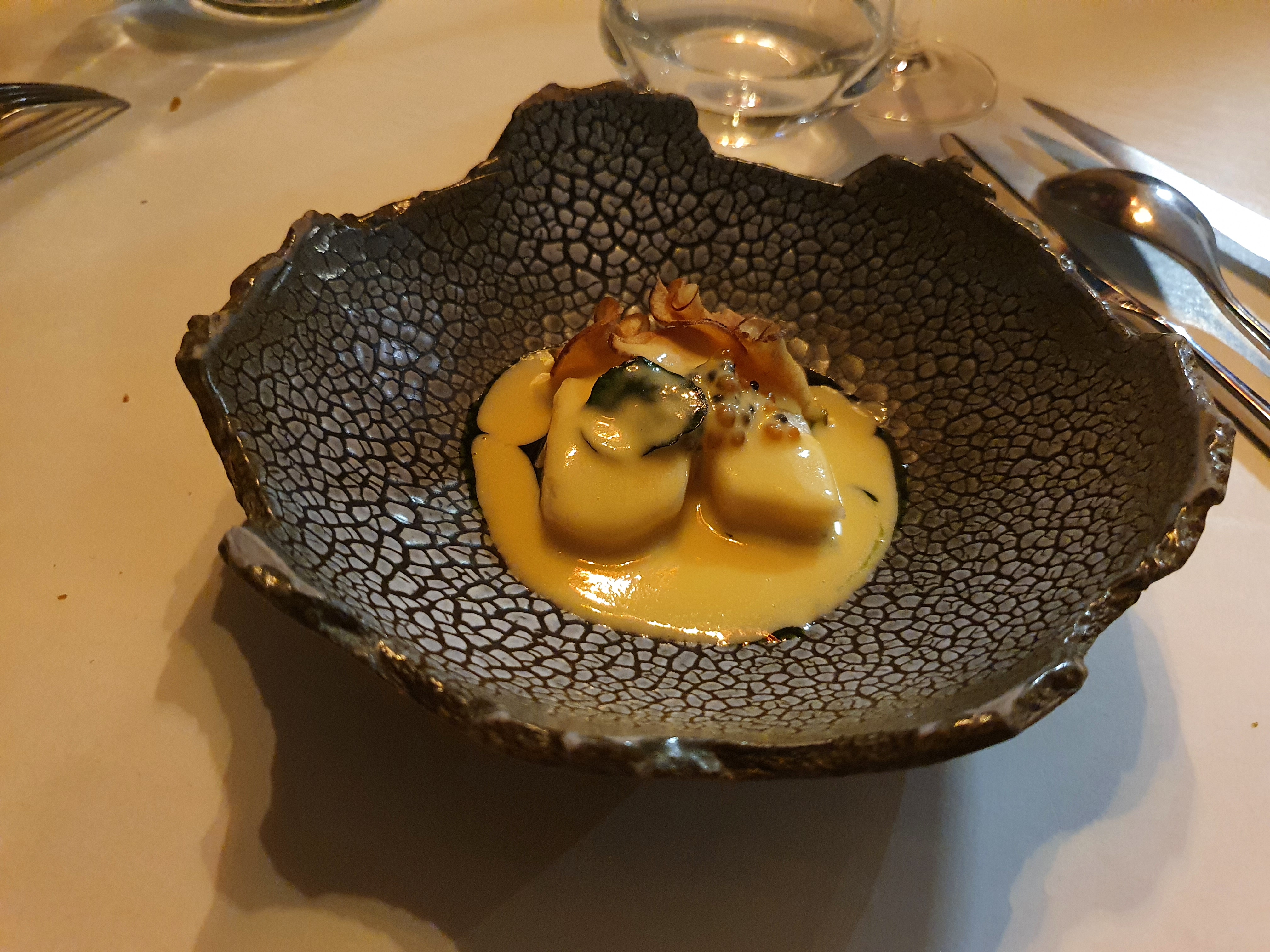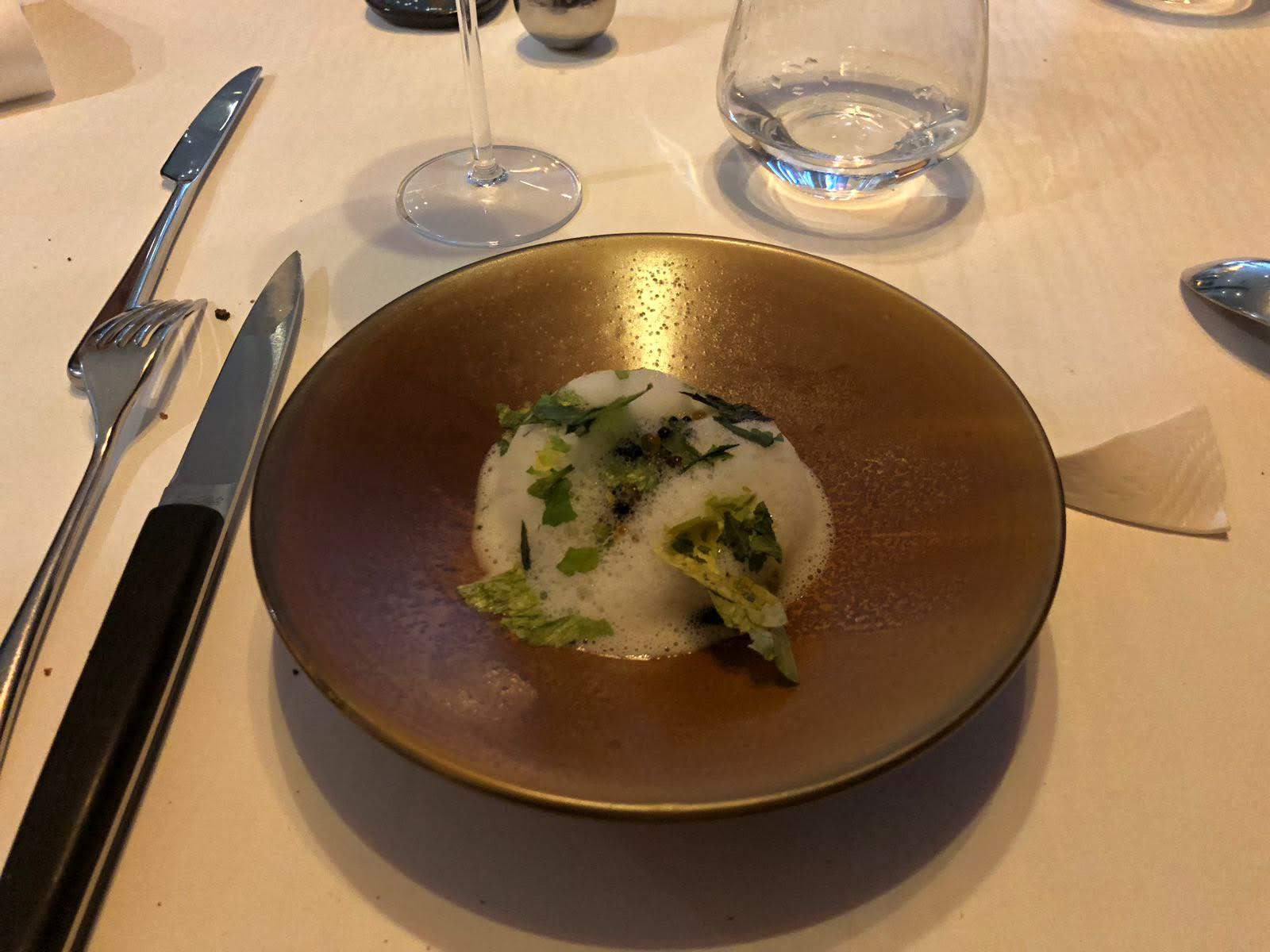 Le soir choix de menu en 5 ou 7 plats. Pas loin de la dégustation dans les portions. Décoration intrigante. L’attitude des serveurs nous a questionnée (beaucoup plus chez l’un que l’autre): il manquait incroyablement de discrétion, expliquait les plats à une table pour toute la salle et a été distrait par l’exercice de son collègue à une table voisine alors qu’il était à la nôtre. Lorsque nous avons donné le nom de la réservation à notre arrivée, le serveur a crié à travers la salle que Mr et Mme untel étaient arrivés. Assez surprenant pour être relevé du fait que nous sommes ici dans un restaurant étoilé. Cela n’enlève rien au fait que le service était attentionné et sympathique.