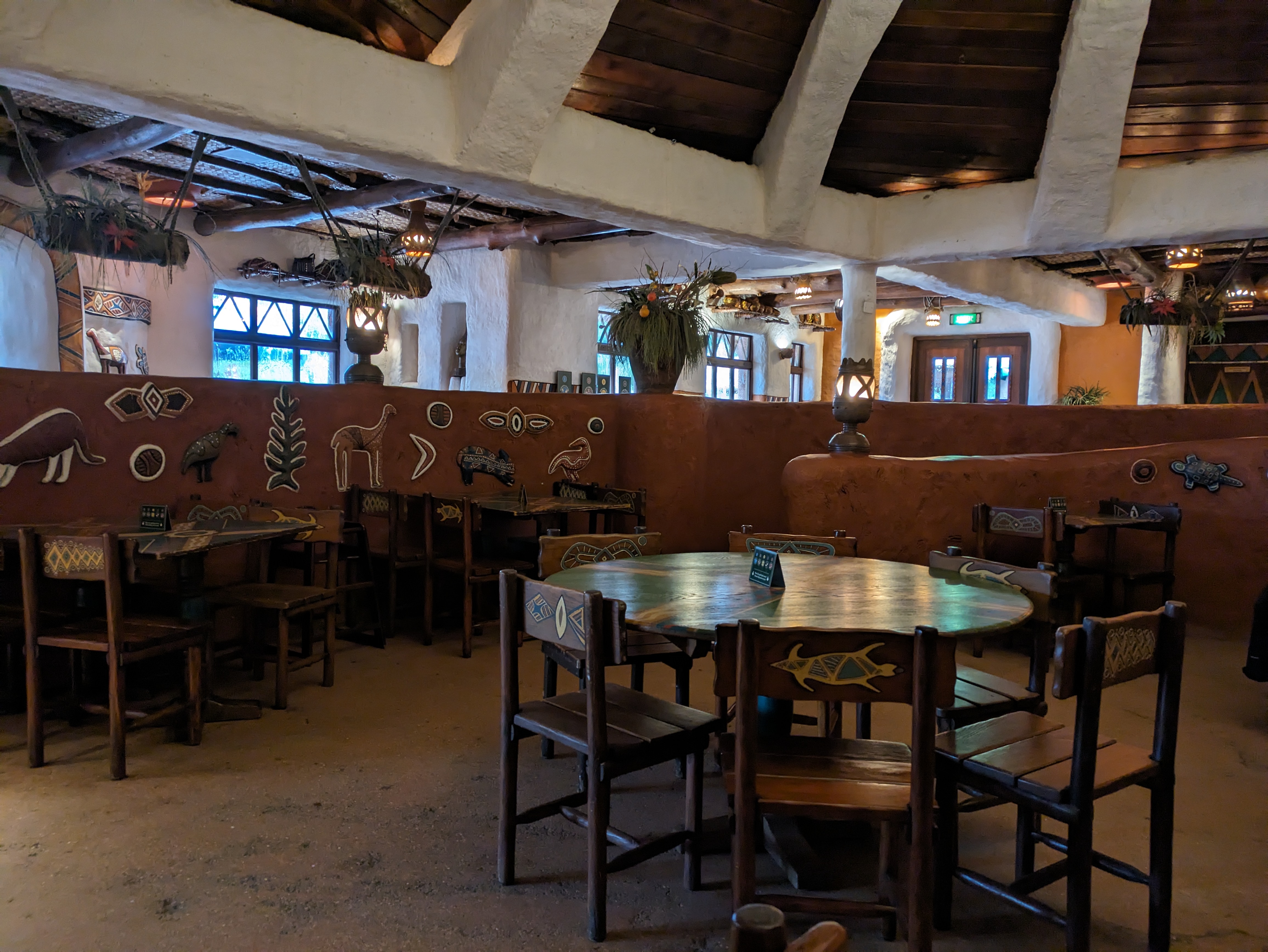 Perso c'est un de mes restos préférée à Disney dans le milieu de gamme(entre les chef étoilée et les stands). J'adore les décors, l'esprit savane.Les midis il y a un musicien qui fait du Jimbo. Il est préférable d'y aller vers 16h-17h où l'attente est faible. C'est aussi à moindre coût(menu entre 15 et 20€) le moyen de manger autre chose qu'un hamburger. Perso j'adore les aiguillettes de poulet et les salades. PS le repas avec Rafiki et Mickey Safari n'était dispos que durant la saison Roi Lion qui est fini depuis début octobre.