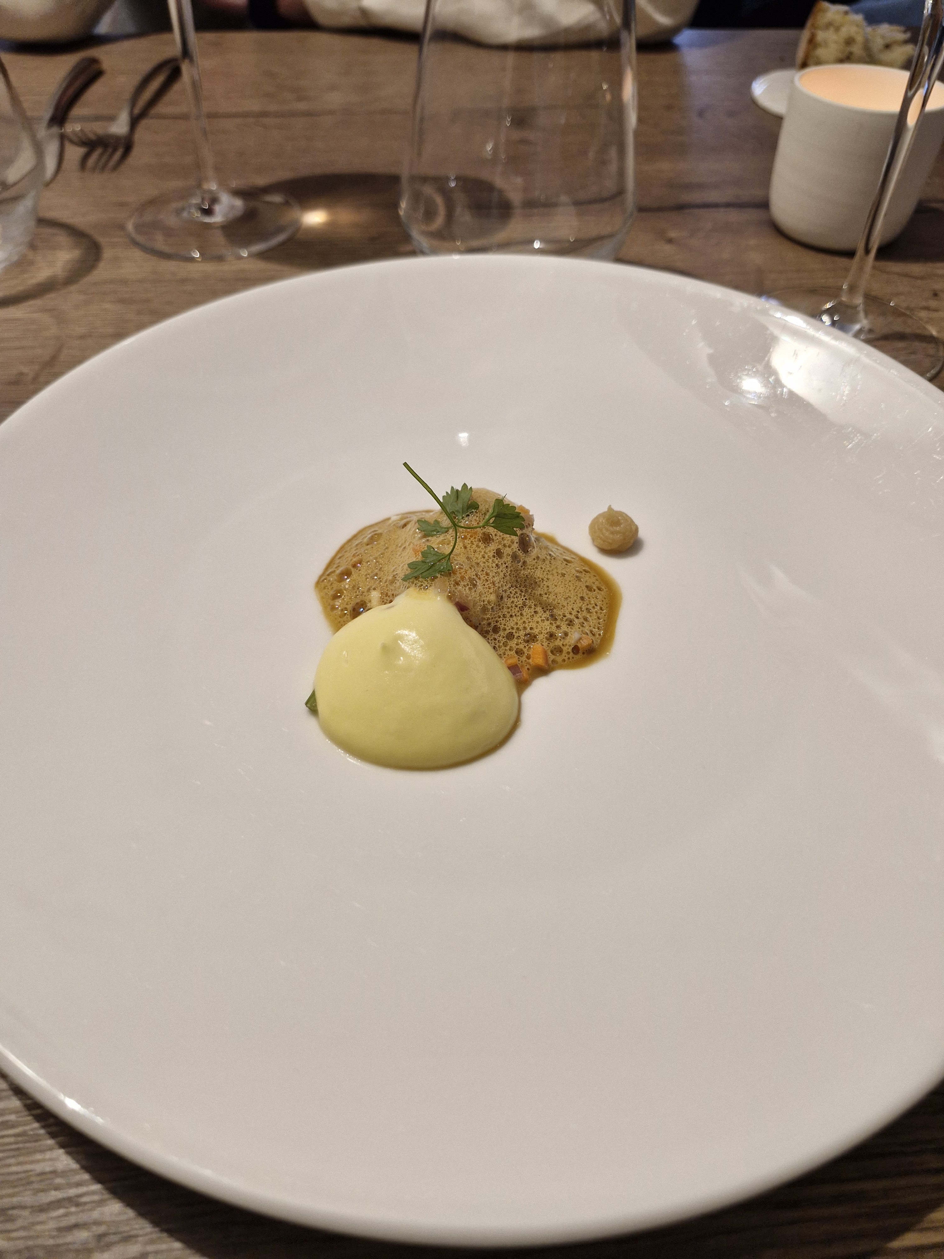 Haut l’image … haut vol ! Commençons par le cadre : la vaisselle choisie avec soin ; originale (mention spéciale à PlatOsurco et Un air de Céramique) la déco de bon goût, l’espacement des table : tout cela au service d’une équipe sympathique et aux petits soins. Et profitons du voyage : cuisson parfaite - cette langoustine cuite à 42° nous laisse un souvenir ému ; sauces précises ; et belle créativité Nous restons dans notre petit nuage Merci 🙏🏻