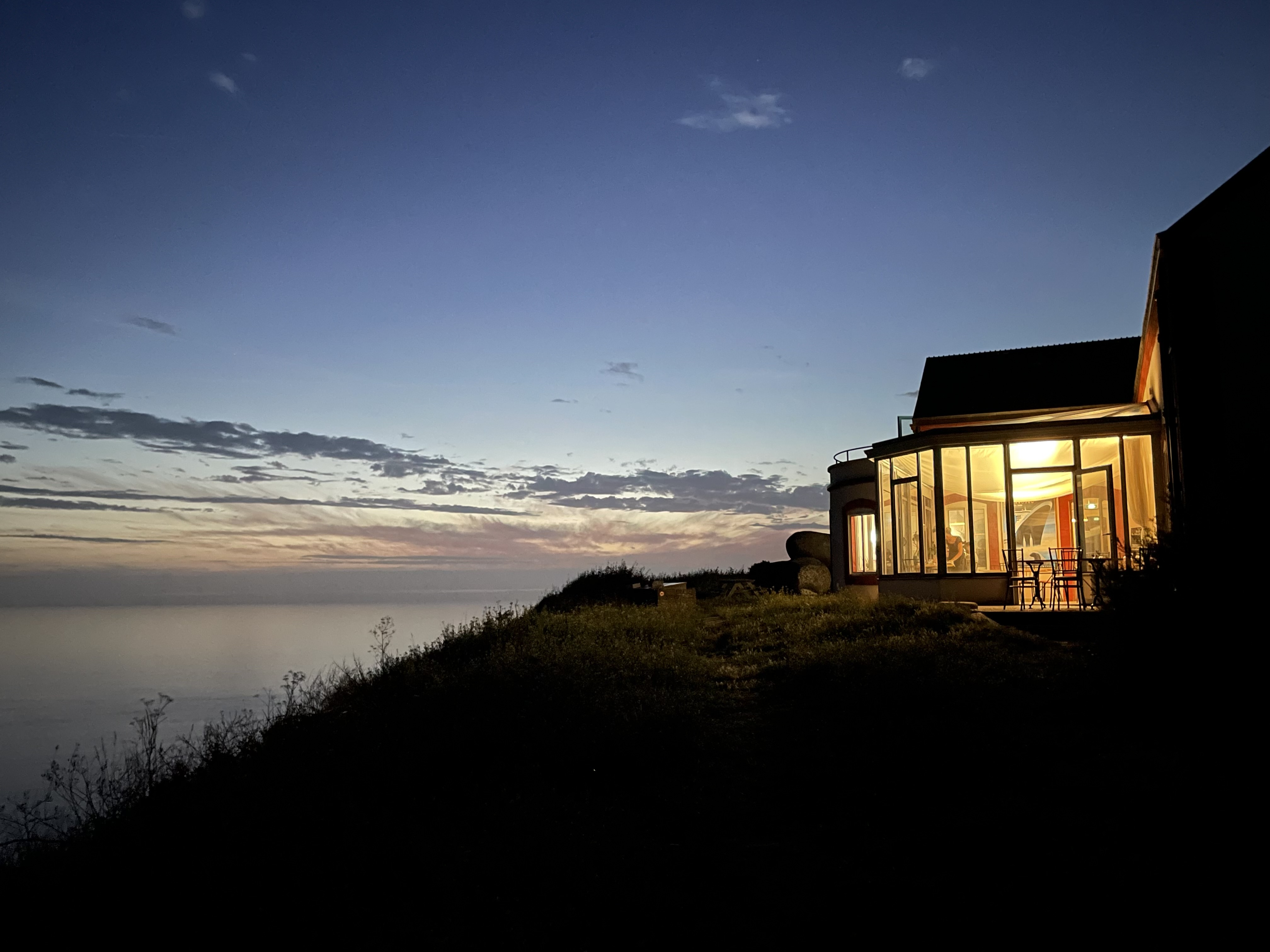 Un lieu avec une vue somptueuse, on a bénéficié en plus d'un très joli coucher de soleil ! Le propriétaire est très accueillant, on reviendra pour voir les dauphins et goûter les homards