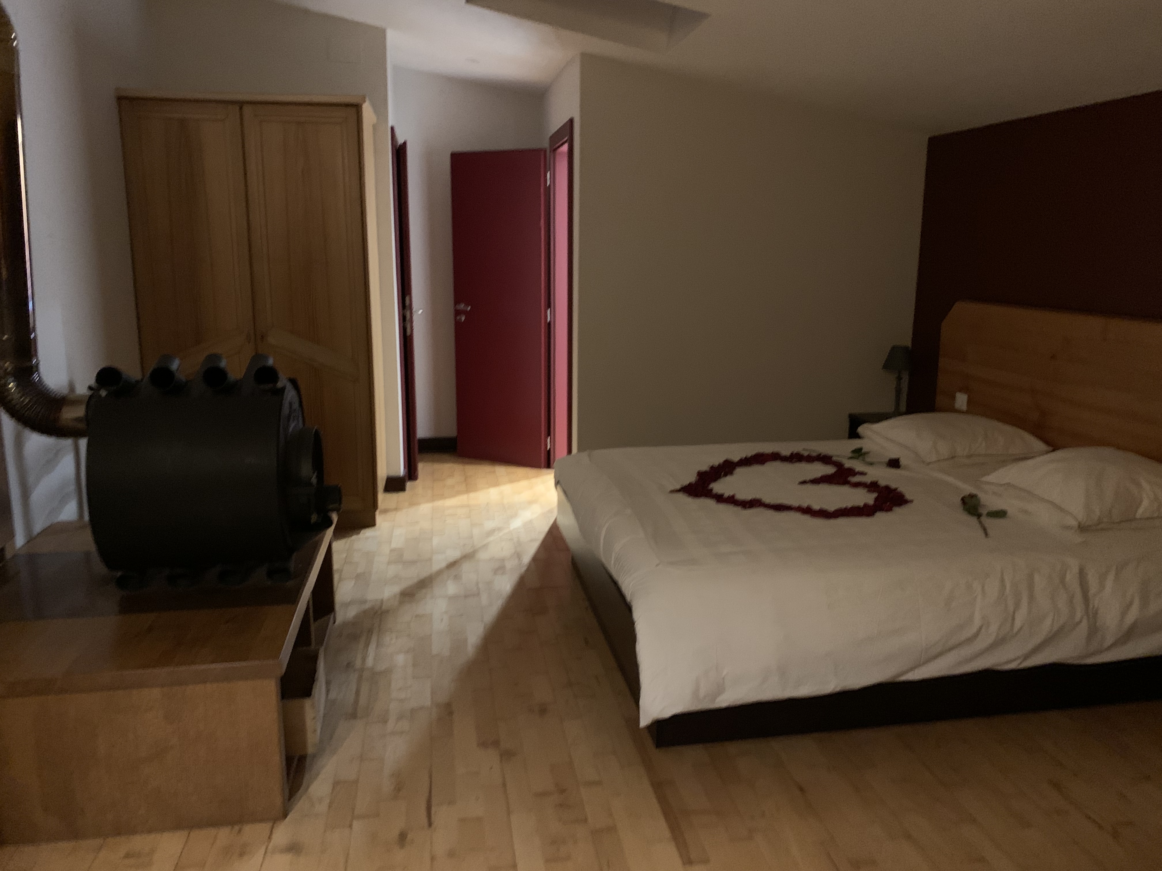 Repas excellent manque peut être de cocktail où d'autres bières mais à par cela absolument rien d'autre à dire 😜 Pour la nuit c'est juste une déconnexion totale entre le spa et le un silence 😁 Au matin petit dej devant dans la porte en toute discrétion vraiment sympa