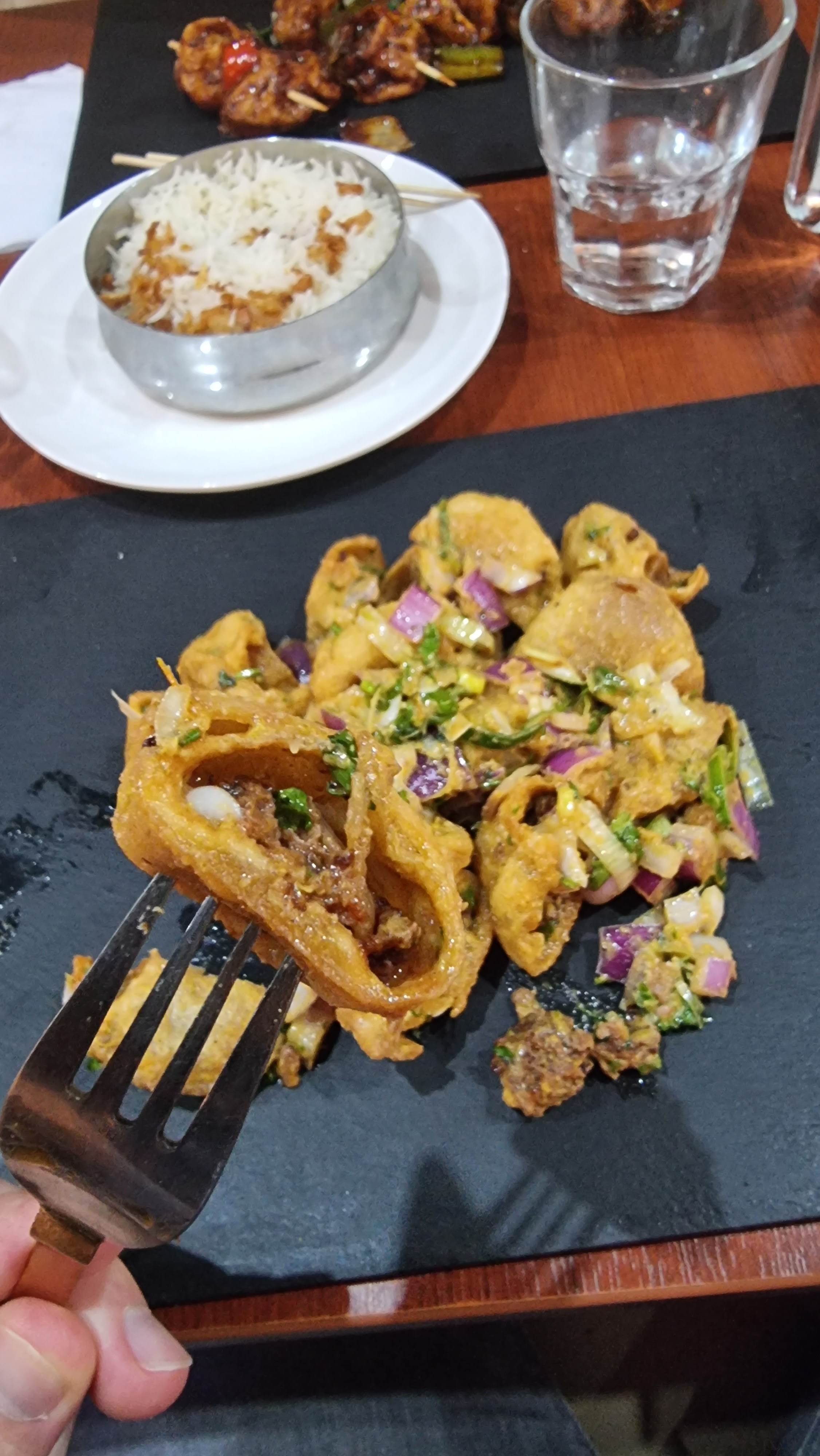 J'ai eu une expérience horrible et j'ai ordonné à Momos Sukuti d'accompagner un naan au fromage. Momos presque complètement brûlé et immangeable, a tout jeté. Le naan et le personnel étaient bons. Triste :( Mise à jour : j'y suis allé une deuxième fois, j'ai commandé des momos croustillants au poulet, j'ai eu du porc à la place