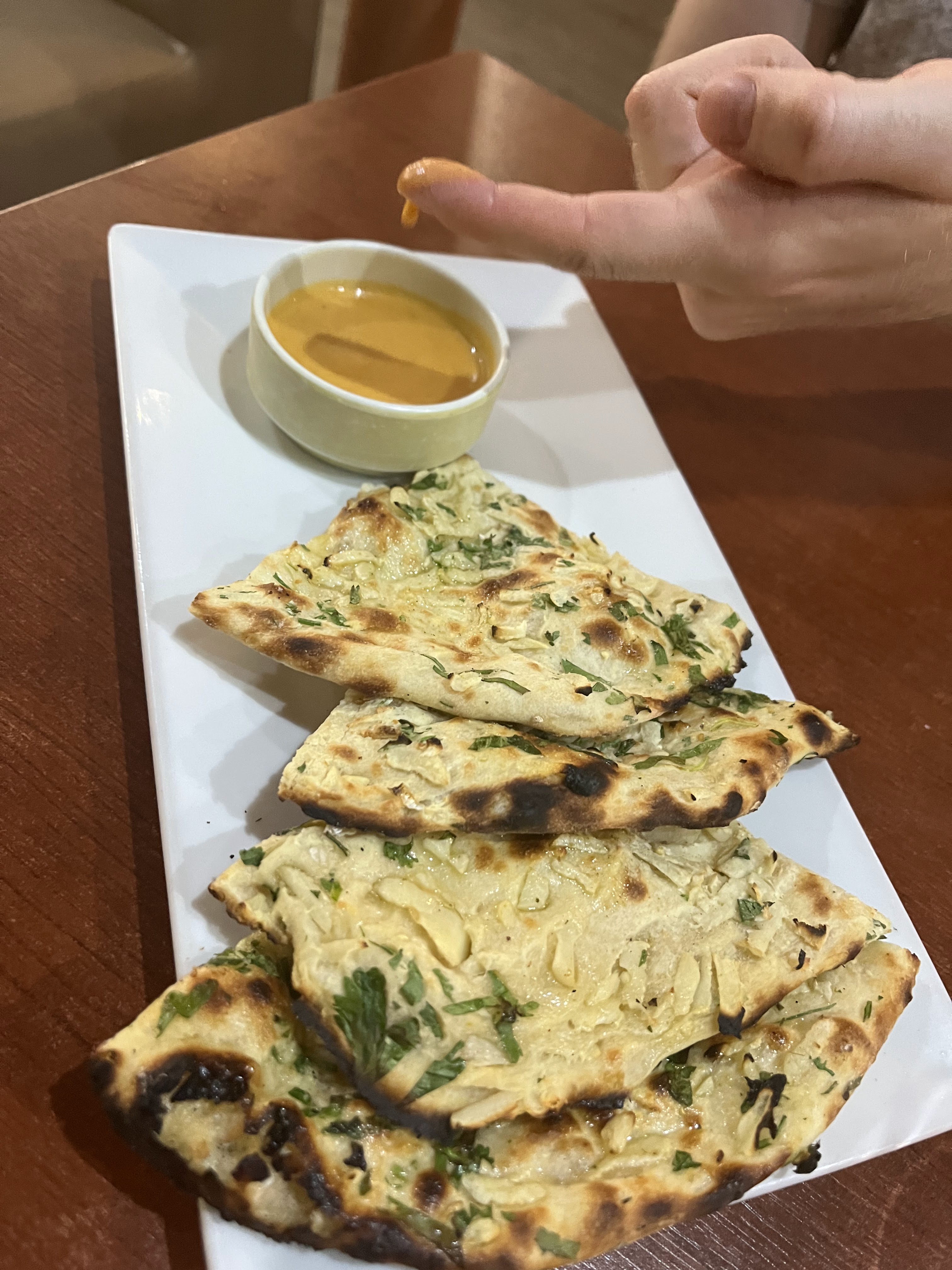 Le Garlic Nan était pas mal mais les Momo en soupe beaucoup trop salés. J'ai eu l'impression de devoir boire 2 litres d'eau en sortant