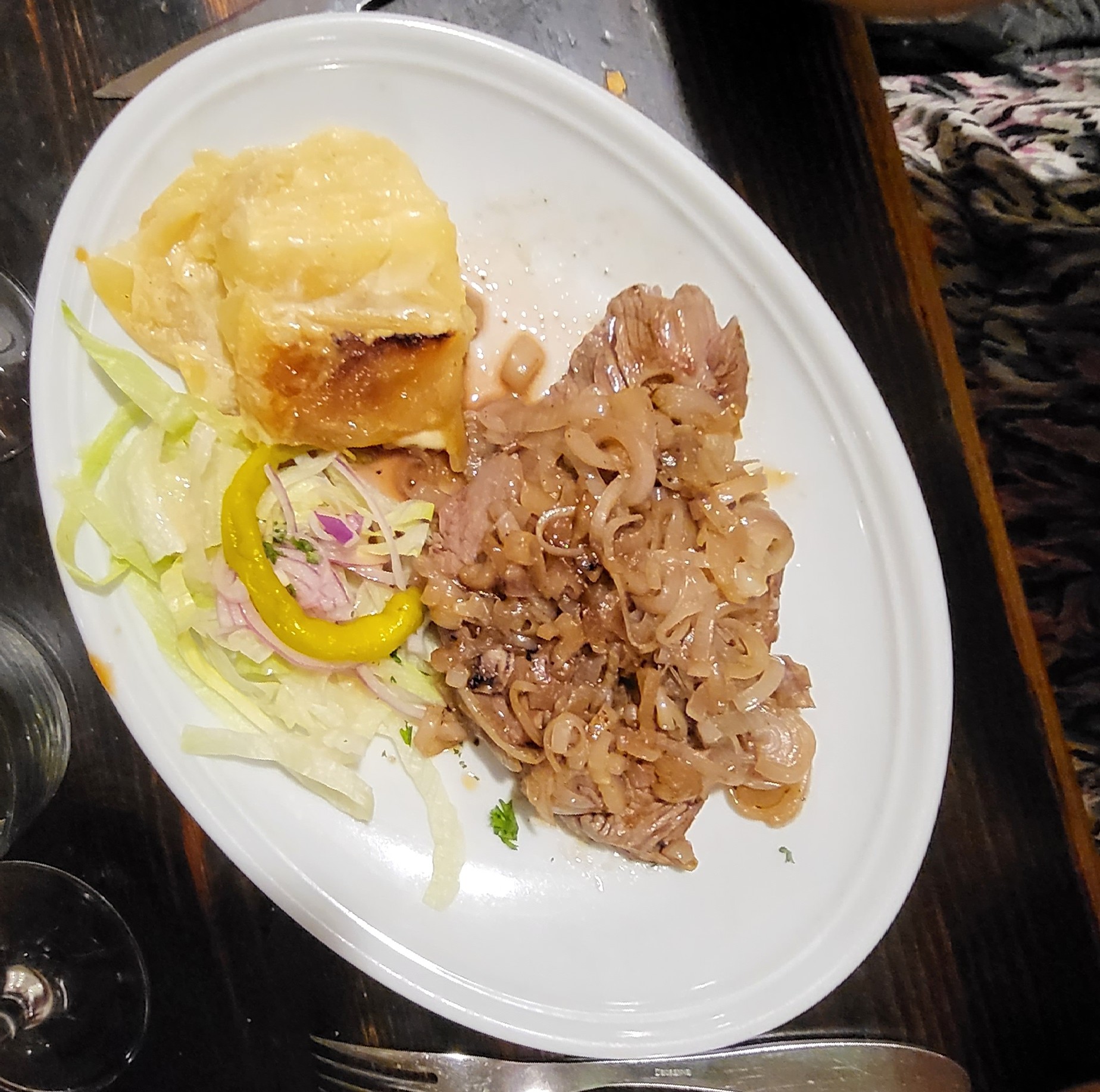 Tout était bien bon! Le côte de bœuf était bien saigné est bien assaisonné. Le morue fraîche, sangria est cidre très bon.