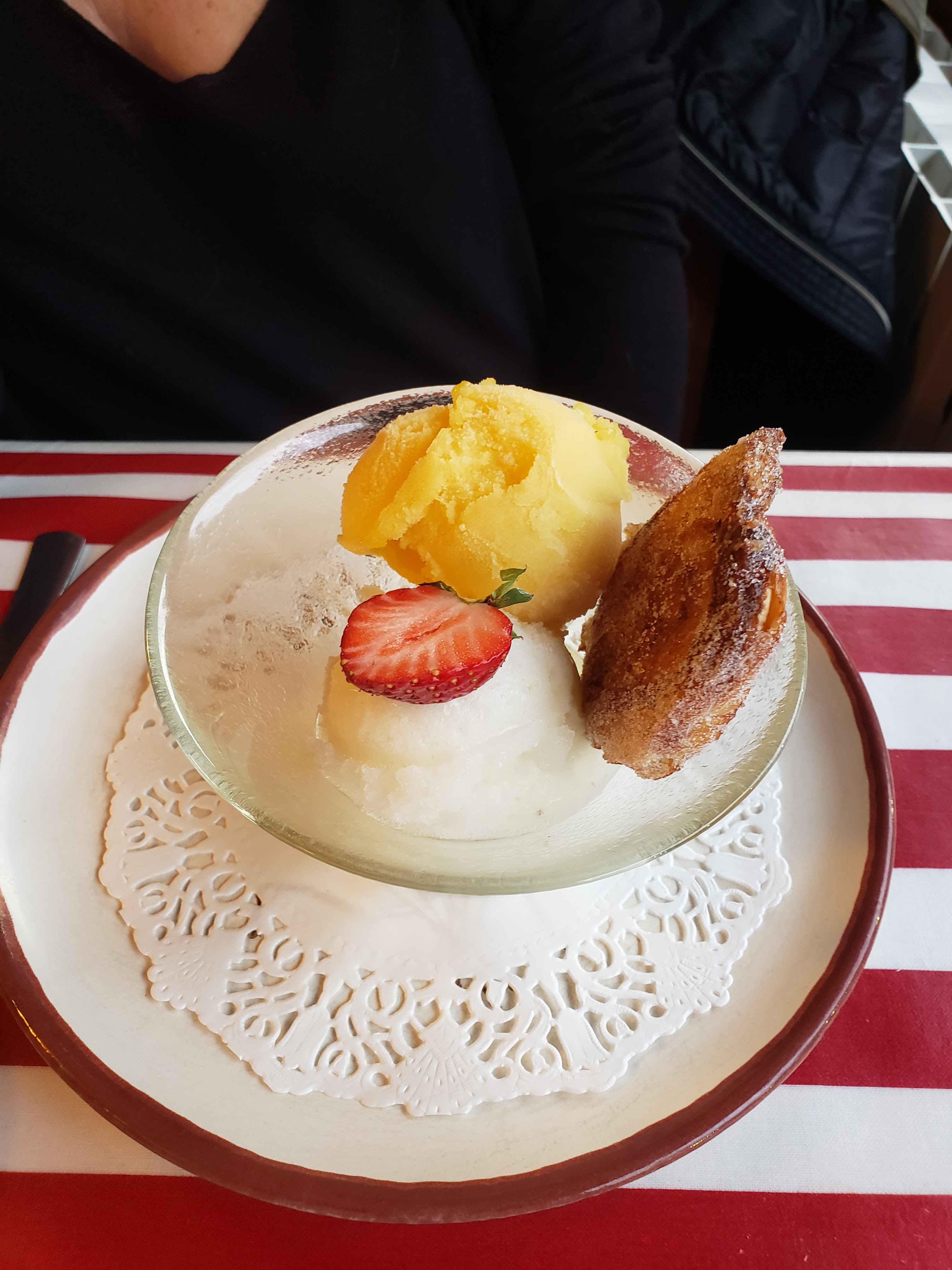 Excellents produits . Personnel aux petits soins . La proprietaire prend le temps de vous expliquez la composition de chaque plats . Terrasse sympathique . Prix correct