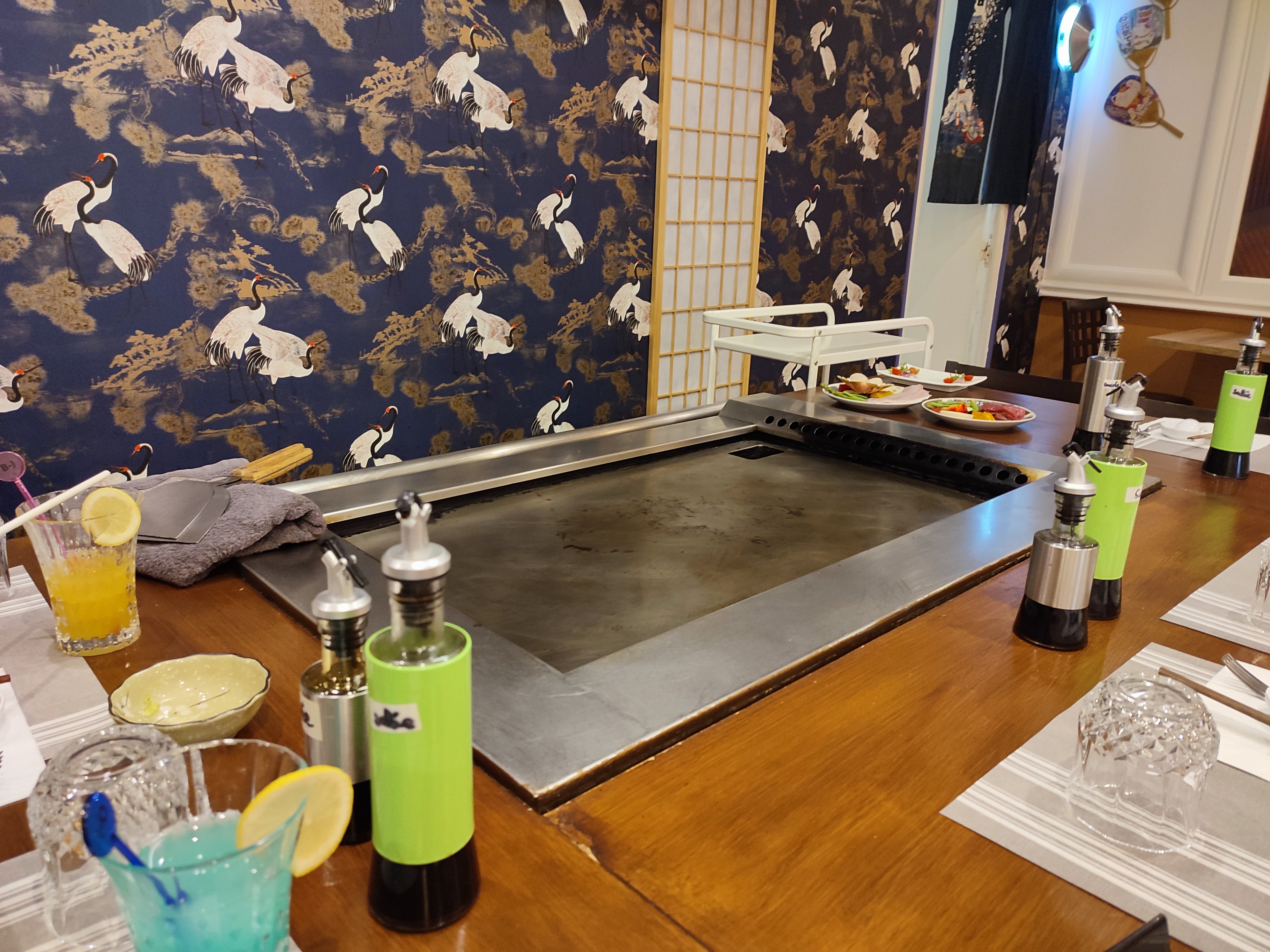Une expérience inoubliable, dîner autour du grill avec un cuisinier quelque peu froid et réservé au premier abord mais très gentil et surtout très pro ! Durant tout le temps qu'il cuisine devant vous il explique ce qu'il fait, les traditions culinaires japonaises. Un vrai spectacle ! Et puis vient le moment de déguster.... Un vrai régal, de la grande cuisine. Rien à voir avec les resto buffet à volonté... Je recommande vivement. Le carde ressemble réellement à un restaurant japonais.