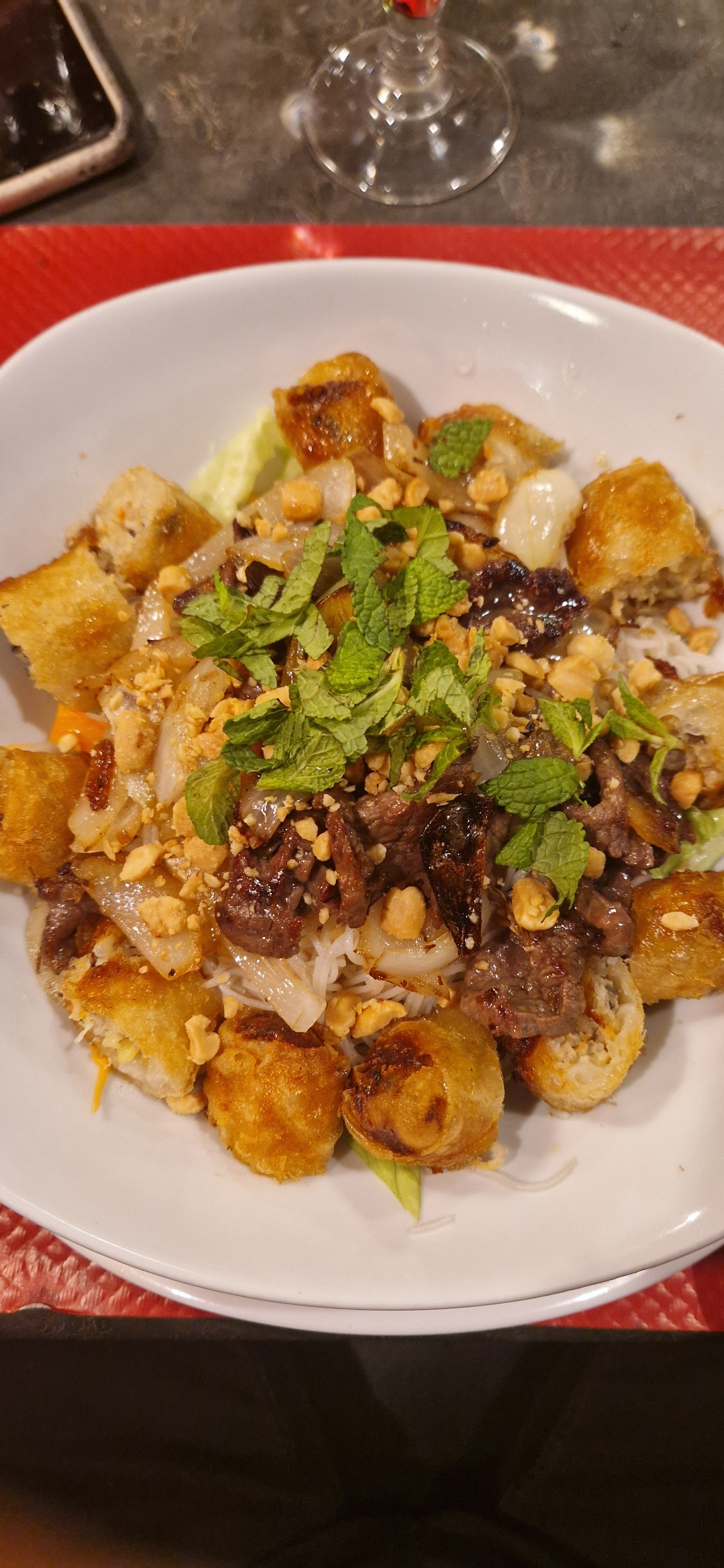 chips de crevettes rances datant de plusieurs jours , nem's sans gout nous avons du demander a quoi ils étaient , car non dit sur la carte,au porc soit disant mais rien de cela a l'interieur, crevettes au sel et au poivre ne ressemblant a rien et nouilles aux légumes au pluriel avec juste de l'oignon nous n'y retournerons pas .