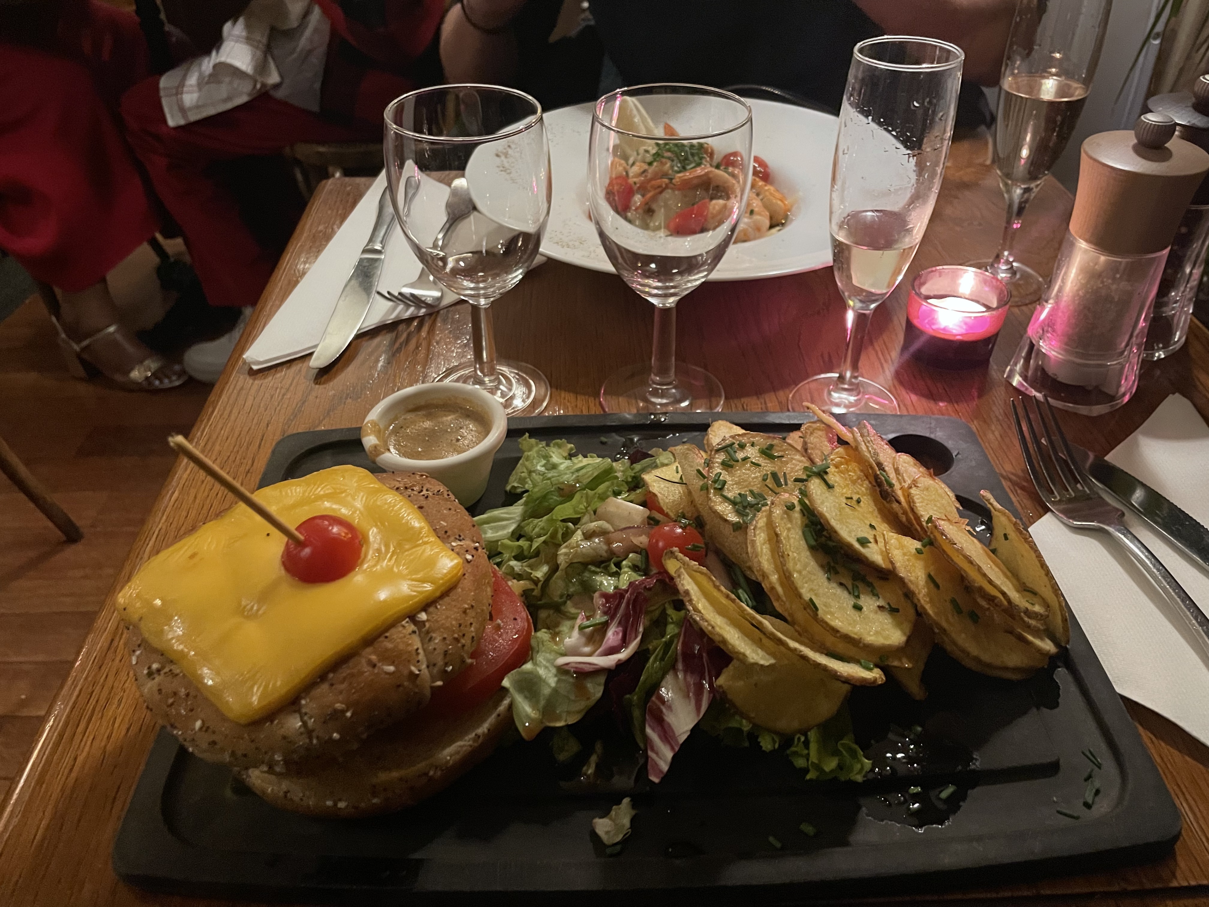 Habitués de ce restaurant si chaleureux, cosy et avec une cuisine si bonne, nous avons diné hier soir et là clairement changement de direction ou de management : les oeufs cocottes au foie gras servis froids et cuits comme de oeufs durs, une planche de charcuterie qui était en fait une assiette avec une tranche de jambon et deux tranches de saucisson baignant dans de la vinaigrette. Pour la plat pas mieux : un magret de canard dur comme une semmelle et un burger dont le pain était si dur qu'il datait probablement de deux semaines. Clou pour le dessert : une verrine du café gourmand servie déjà entamée!!! Je crois que tout cela se passe de commentaires.