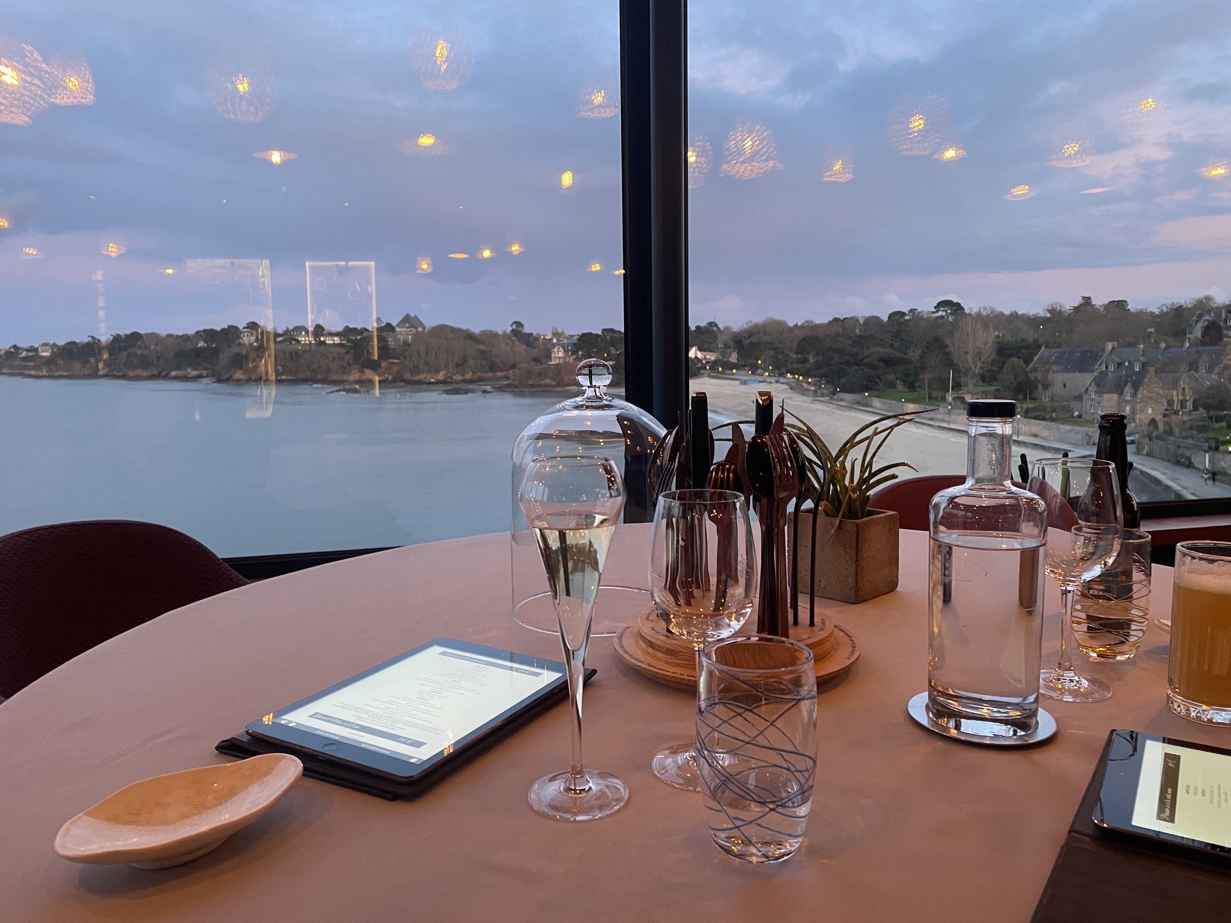 Ma compagne et moi sommes habitués à mettre un repas dans un restaurant gastronomique dans notre to do list lors de nos WE en amoureux. Lors de notr epassage en WE à Dinard, nous avons opté pour ce retaurant et nous avons été échanté. De l'acceuil à notre départ du restaurant tout à été impécable. Décors et table superbe, une vue charmante, une table sobre et élégante avec des couverts de qualité sous cloche pour cause de COVID (superbe effet). De la mise en bouche aux mignardises tout était parfait. Nous avons pourtant oté pour le menu le moins cher de la carte, mais nous avons eu droit à un plat original et savoureux (cochon cuisson basse température sauce au cidre accompagné purée de topinambour) avec des produits simples et de saison (comprenez ici qu'il ne s'agit pas de produits réputés honéreux comme du homard mais cela reste de beaux produits). Le service et le personnel de manière général était très attentif et chaleureux, jusqu'au départ du restaurant ils vous accompagnent avec le sourire tout au long de votre expériece gustative. Nous avons fait des étoilés qui ne nous ont pas fait aussi bonne impréssion. Un grand merci vant tout pour ce moment et nos félicitations à vous quant à la tenu d'un établissement de ce niveau.