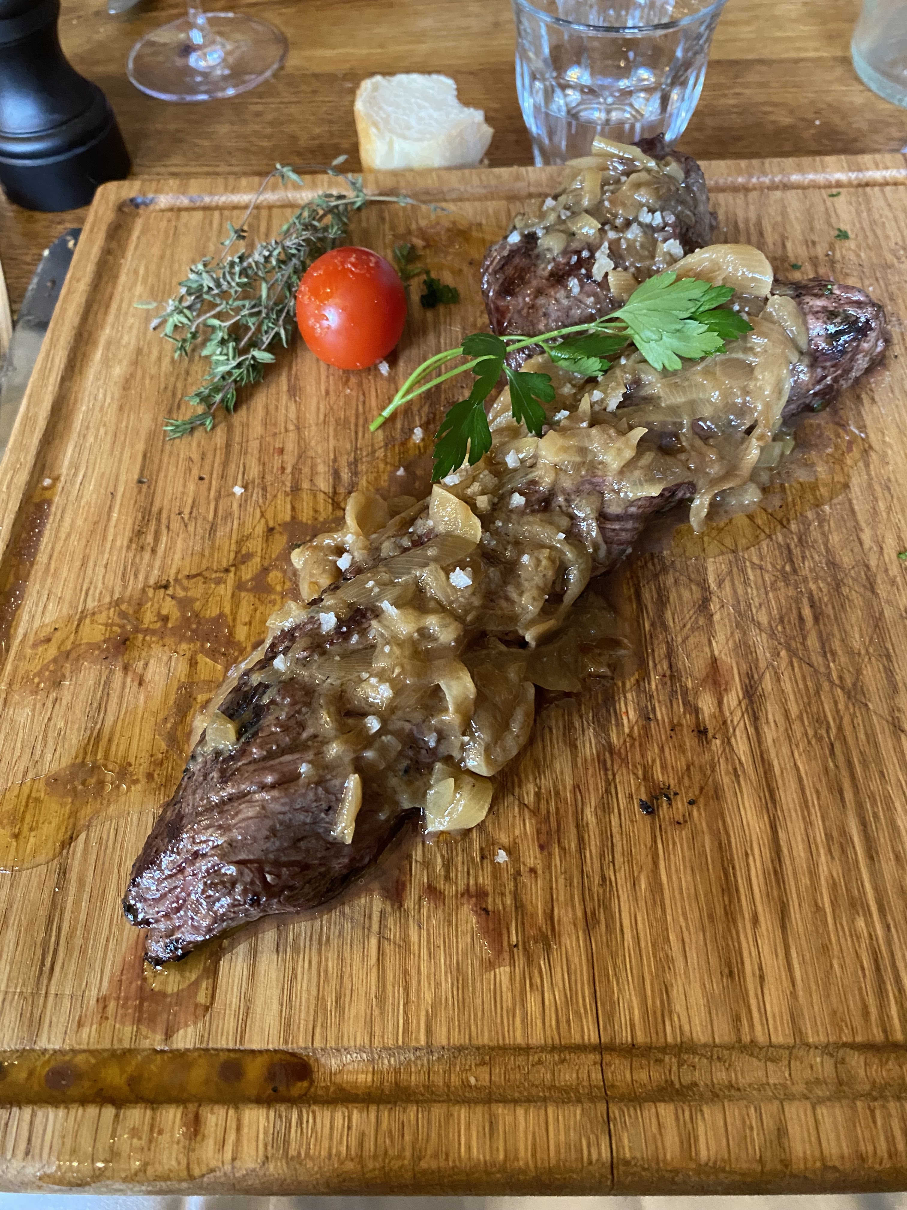 Je connaissais cet endroit depuis longtemps. Mais là gros changement. Très belle terrasse en extérieur. La salle est très triste malgré ses grandes fenêtres neuves. Papier peint défraîchi pas de nappe ou de set de table et serviette en papier blanc. Pas de fleur pour égayer l'ambiance. Le service est correct. La carte des vins correct sans aucune indication de millésime. Le service au verre est possible mais vous ne verrez pas de quelle bouteille vient le vin. Ensuite les plats sont servis façon bistrot. La pièce de boeuf très bonne le poisson en trop petite quantité les desserts sans intérêt. On vous apporte une assiette de fromage sans vous les présenter. Même si les produits sont de bonnes qualité il n'y a pas la quantité. Je réessaierai l'année prochaine.