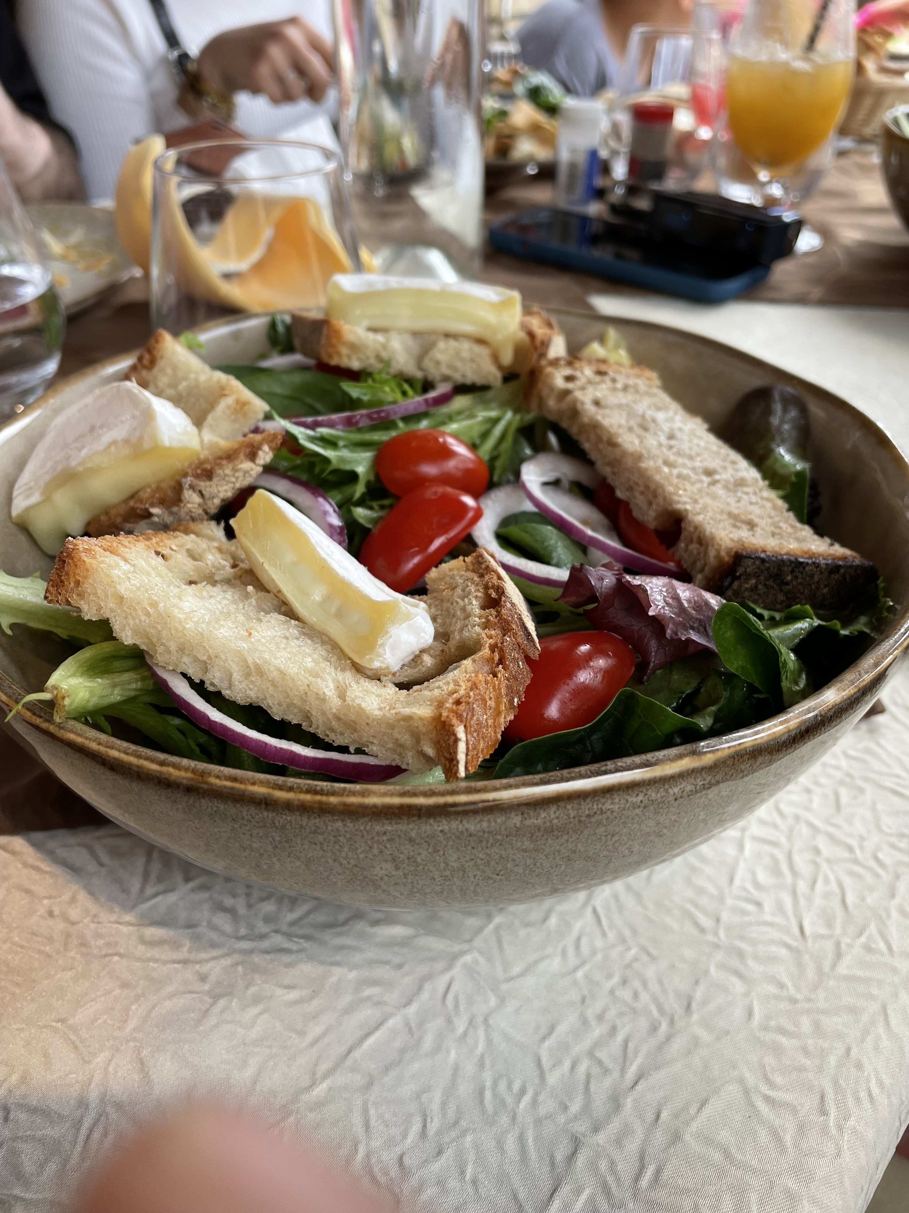 Super déjeuner en Terrasse avec le soleil bien sûr ! Service rayonnant accueil chaleureux Repas exquis , délicieuses salades composées le chèvre est savoureux et très bien présentées ! Bravo au cuisinier Merci !!
