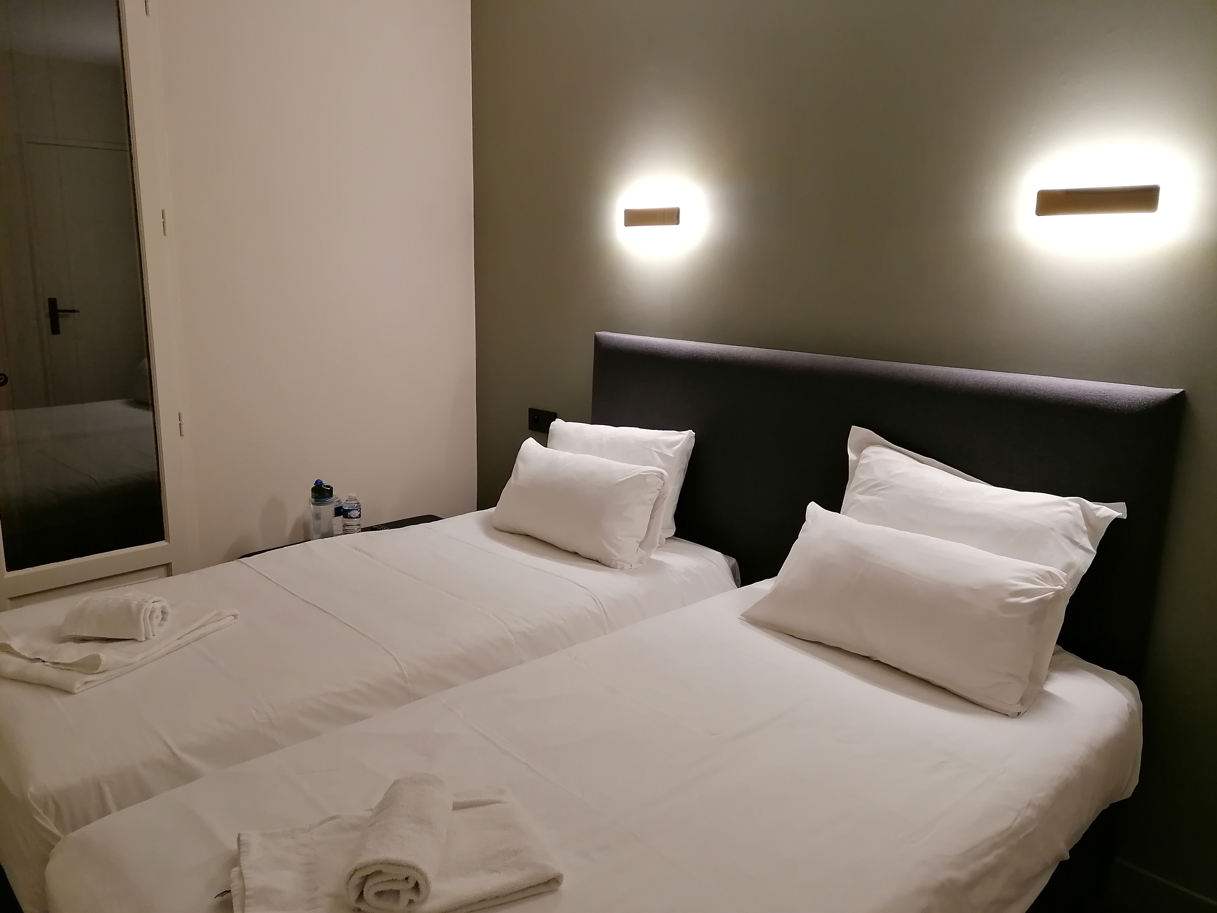 En payant cette chambre double 100€ plus 10€ de petit déjeuner je m’attendais quand même à quelque chose d’assez contemporain en terme de décoration. La chambre n’est pas si mal que ça mais la climatisation ne fonctionnant pas, j’étais dans l’obligation de dormir avec 26°c dans la chambre, impossible d’ouvrir la fenêtre et de s’endormir avec le bruit de la rue, le téléphone pour appeler la réception ne fonctionnait pas non plus et pour finir, les murs étaient tellement bien isolés que j’entendais toutes les chambres autour ! La salle de bain mériterait un bon rafraîchissement, on dirait qu’elle a 20 ans ! Donc très mauvais rapport qualité prix pour la chambre, j’ai déjà vu des chambres à 70€ en pleine saison qui en offrait tout autant voire mieux. Mes deux étoiles reviennent principalement pour le petit déjeuner auquel rien ne manque, la situation de l’hôtel en plein centre ville et aussi à la personne de la réception, très professionnelle. Le reste a un grand besoin d’amélioration.