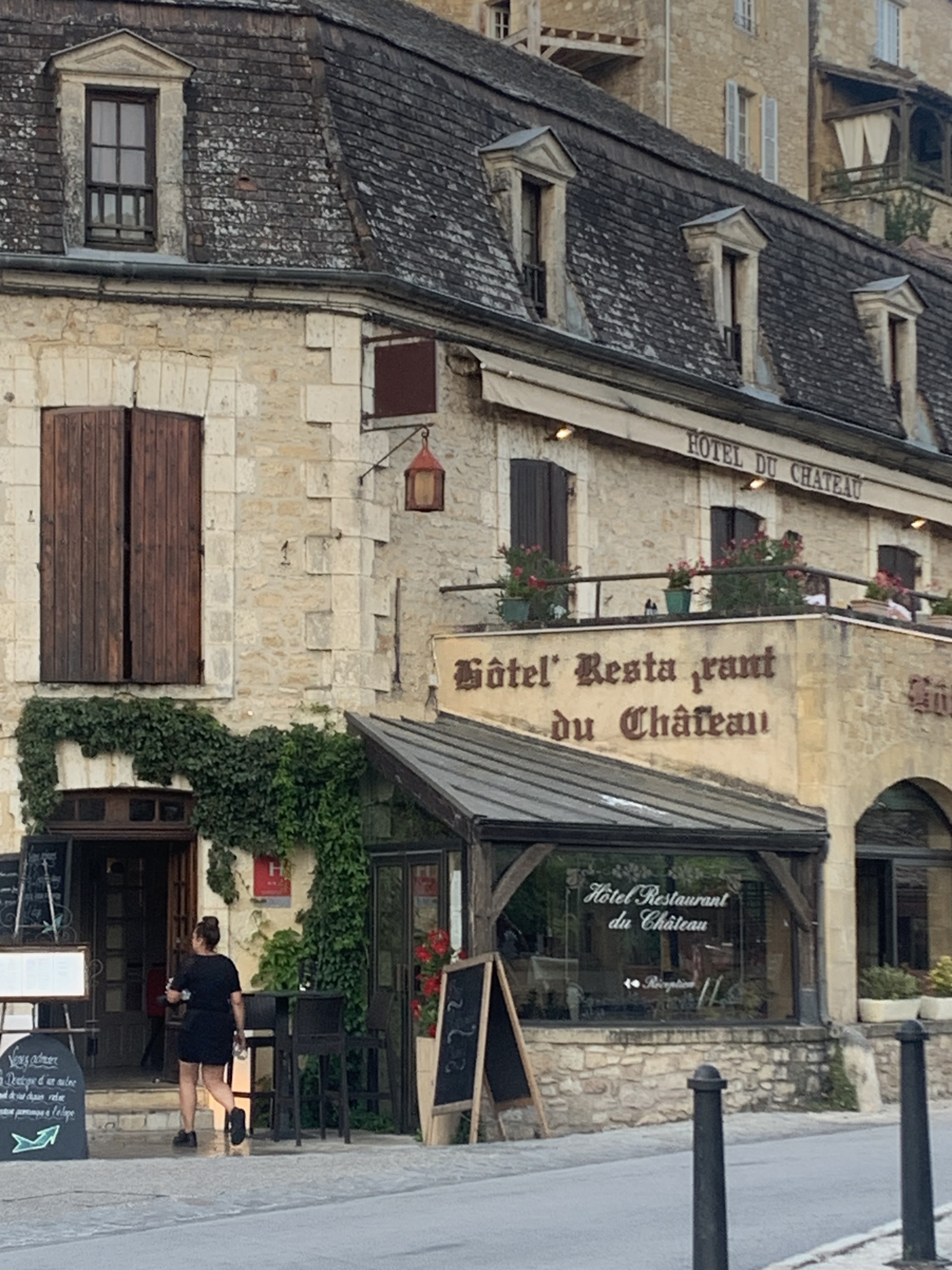 Je ne juge que le restaurant, les serveurs sont très agréables et très pro, le restaurant est bien situé, vous avez trois ambiances, intérieure, terrasse couverte rattachée au resto ou terrasse au bord de la Dordogne. Je trouve que les plats à la carte sont un peu chers mais que le menu « balade en Périgord » est acceptable, néanmoins le croquant de cabecou il y a plus de croquant que de fromage, la crème brûlée serait meilleure un peu chaude , en revanche l’anchaud avec les pommes de terre salardaises était excellent. Le hamburger était très bon, la viande était de qualité, mais la cuisson n’était pas respectée. Les salades Cesar et périgourdine (25€) c’est très cher surtout qu’il y a beaucoup de salade. Ce restaurant mérite 3,5 mais pas 4. Vous passerez un bon moment après une belle balade dans les rues à visiter. Je vous conseille de redescendre par les bois et de revenir en longeant la Dordogne.