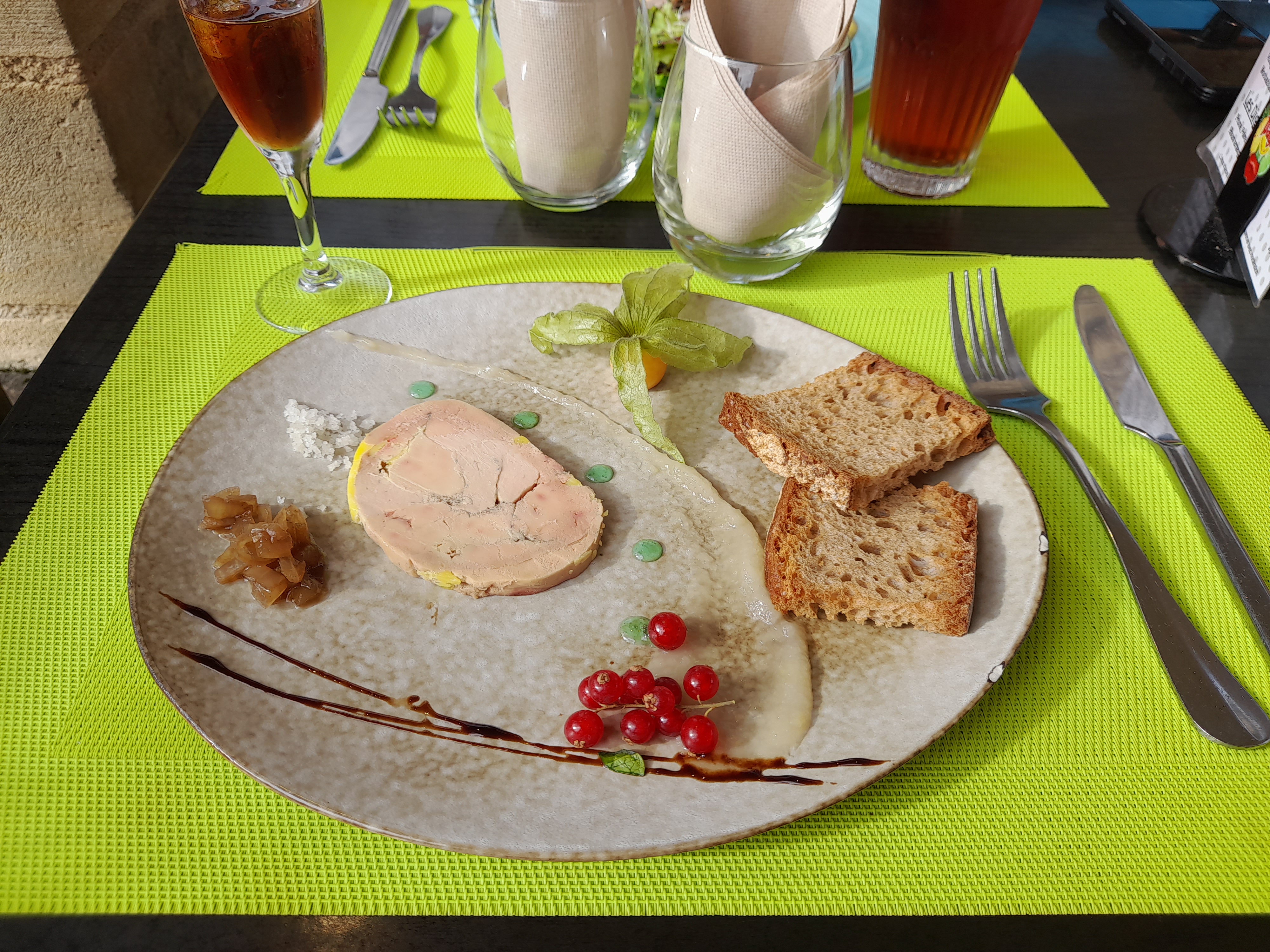 Nous nous sommes arrêtés par hasard en revenant de Sarlat et très belle découverte Menu enfant avec de vrais plats et une présentation comme pour les adultes. Tourin blanc en mise en bouche excellent. Ris de veau parfaitement cuits. Des plats sans faute. Service très rapide avec enchaînement au top entre adultes et enfants. Bref, une très belle découverte