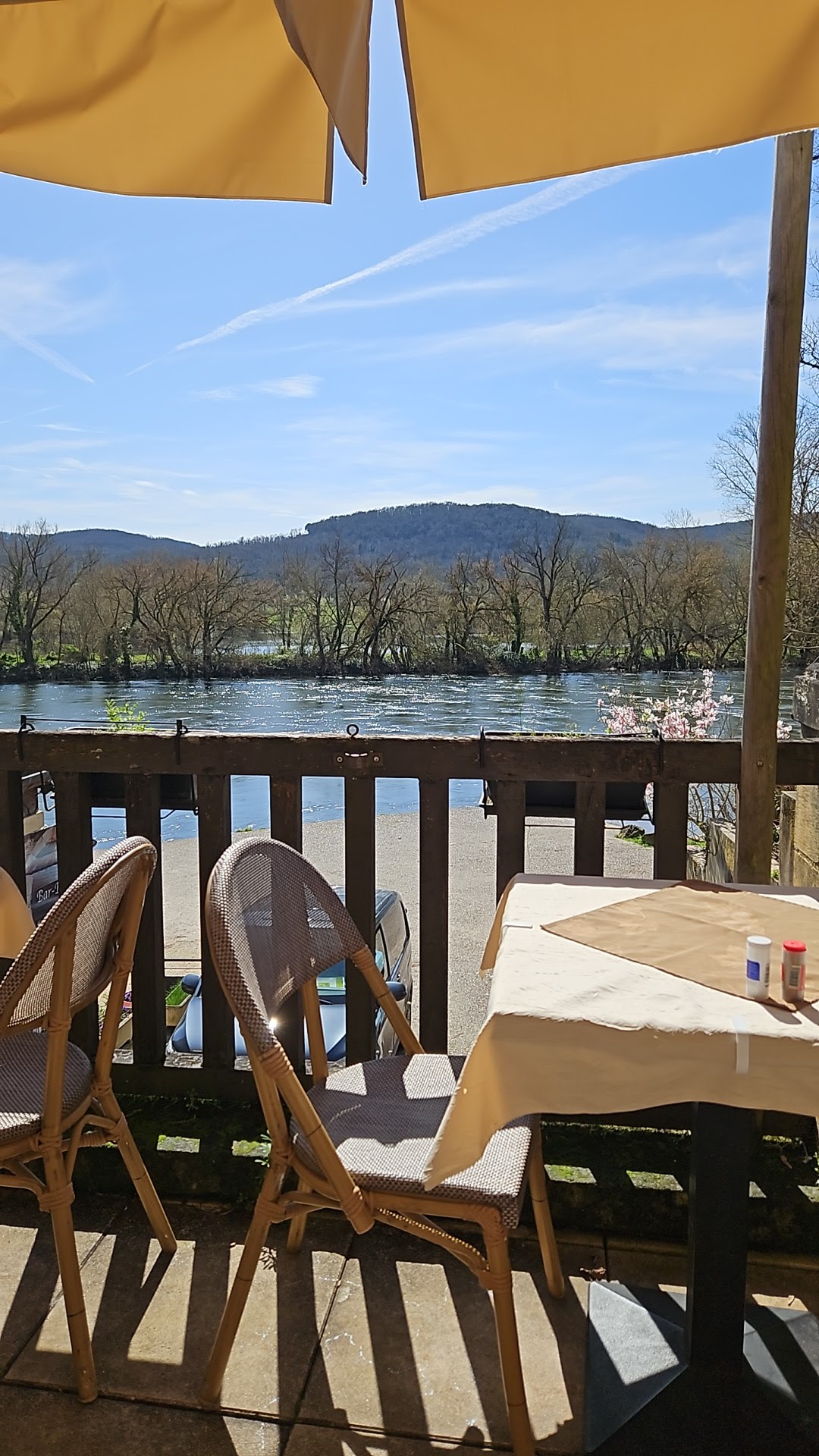 Bonjour, Très agréable, surtout en terrasse avec vue sur la Dordogne, service sympathique, prix raisonnable pour 2 pers, le repas fût bon. Je vous conseille donc de vous y arrêter. Bien à vous.