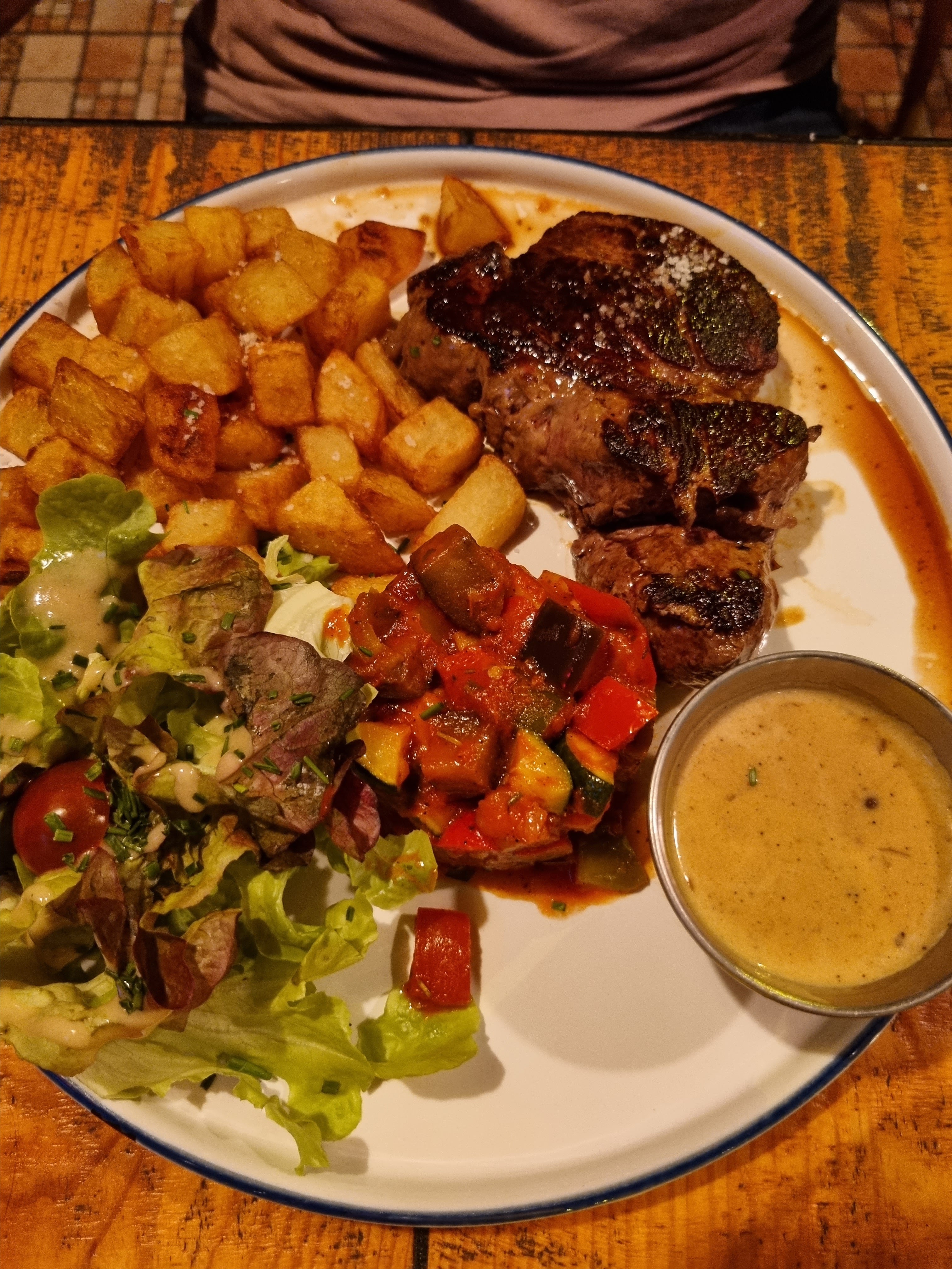 Très bon repas, service rapide, petit bémol pour la bière pression inexistante et la musique trop forte lors des soirées avec dj