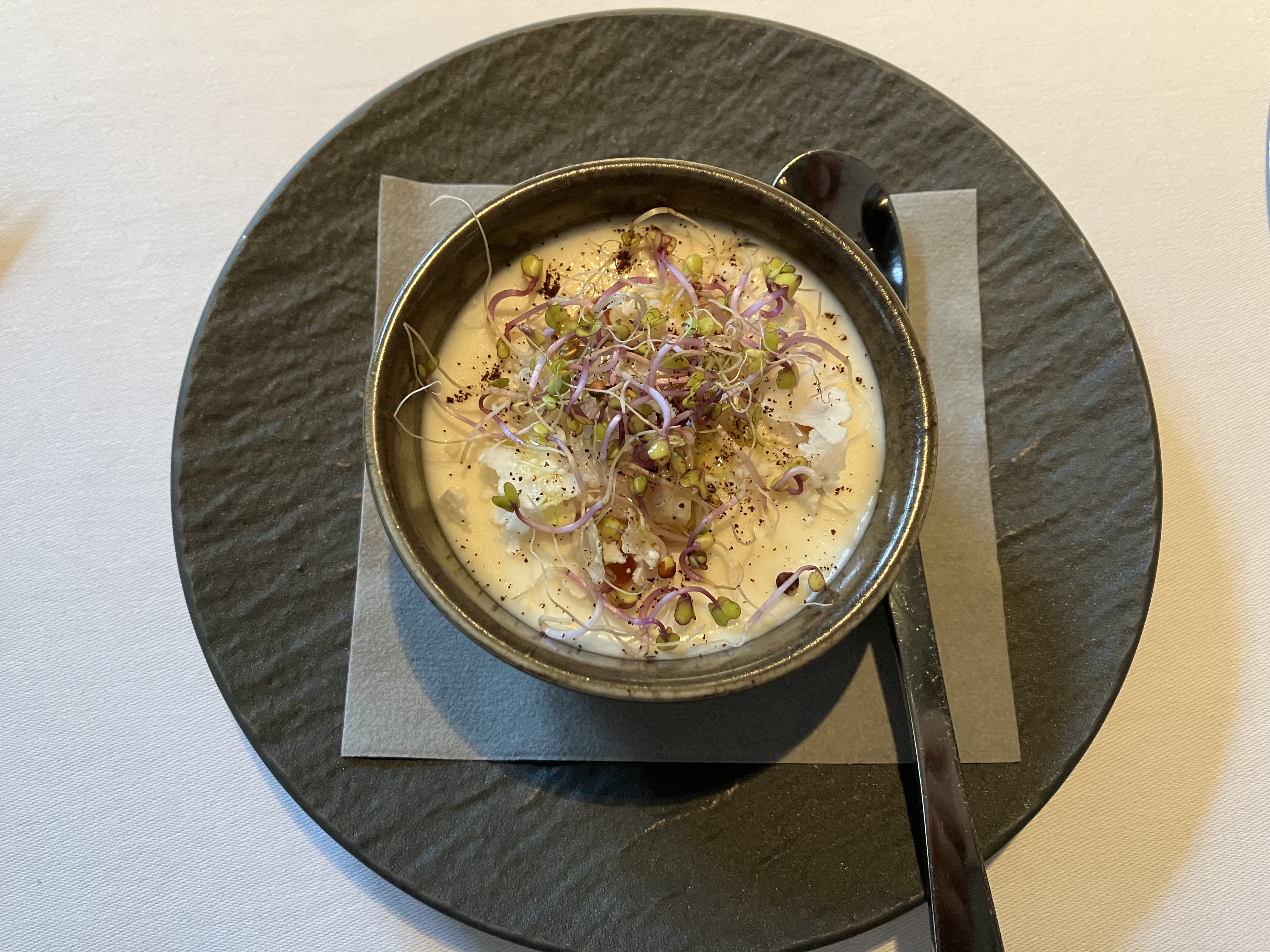 Cuisine travaillée mais je m'attendais à mieux dans les saveurs. C'est peut-être une histoire de goût car j'ai l'habitude de manger relativement salé/épicé. En tout cas le service était top et la présentation des plats minutieuse. Terrasse reposante et calme.