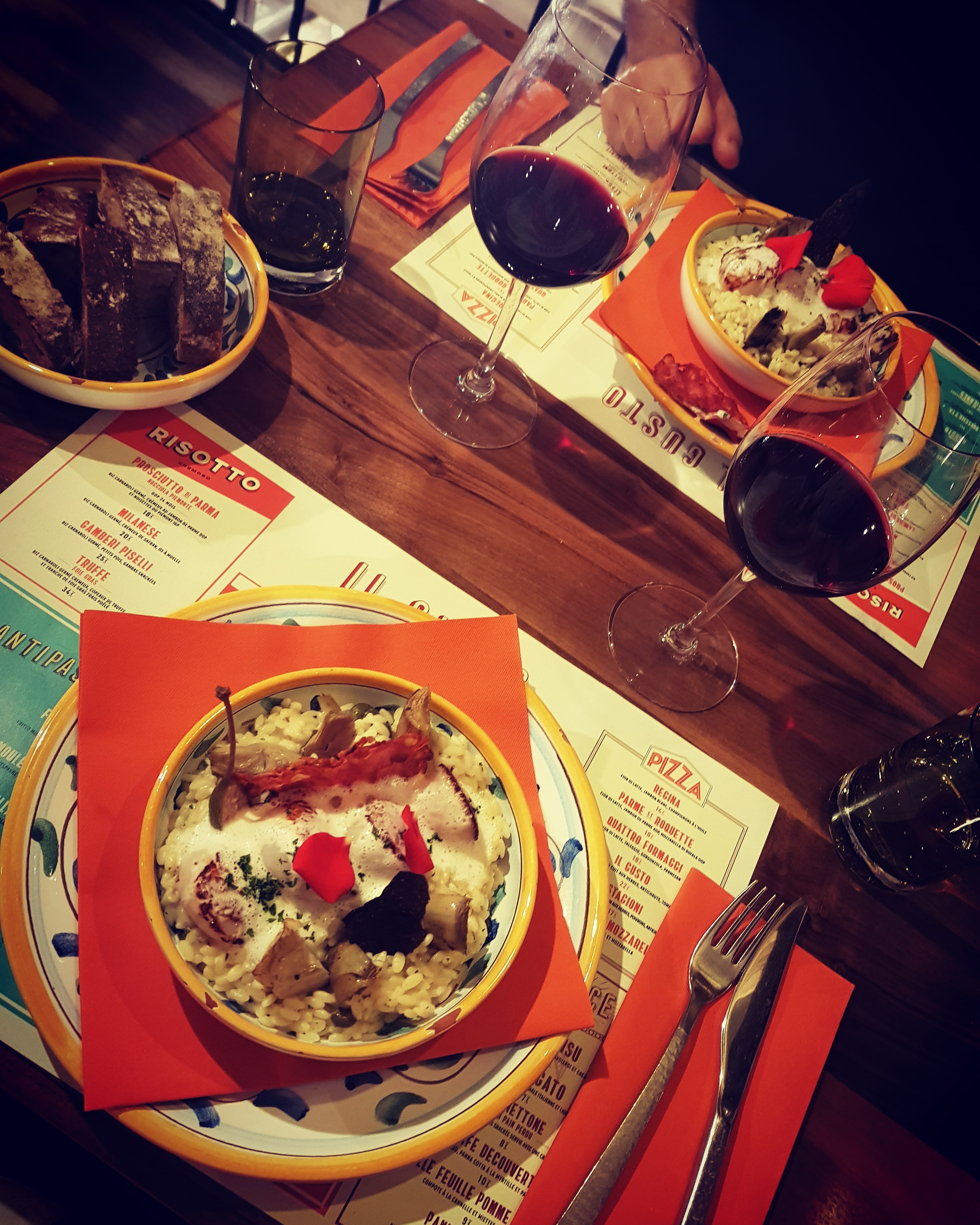 Un régal, je ne peux que le recommander! une explosion de saveurs, du goût de la qualité! les petits légumes à l'huile: une tuerie. La minestrone de la nonna, parfaite. Le risotto au jambon cru de parme et la noisette, encore plus crémeux qu'à la maison. La polenta avec la charcuterie! Où est la recette, je n'ai jamais mangé de polenta aussi généreuse et le café affogato avec les deux boules de glace vanille et la liqueur de café...comment dire? quand est-ce qu'on y retourne?! Et le cadre, tutti va bene :)