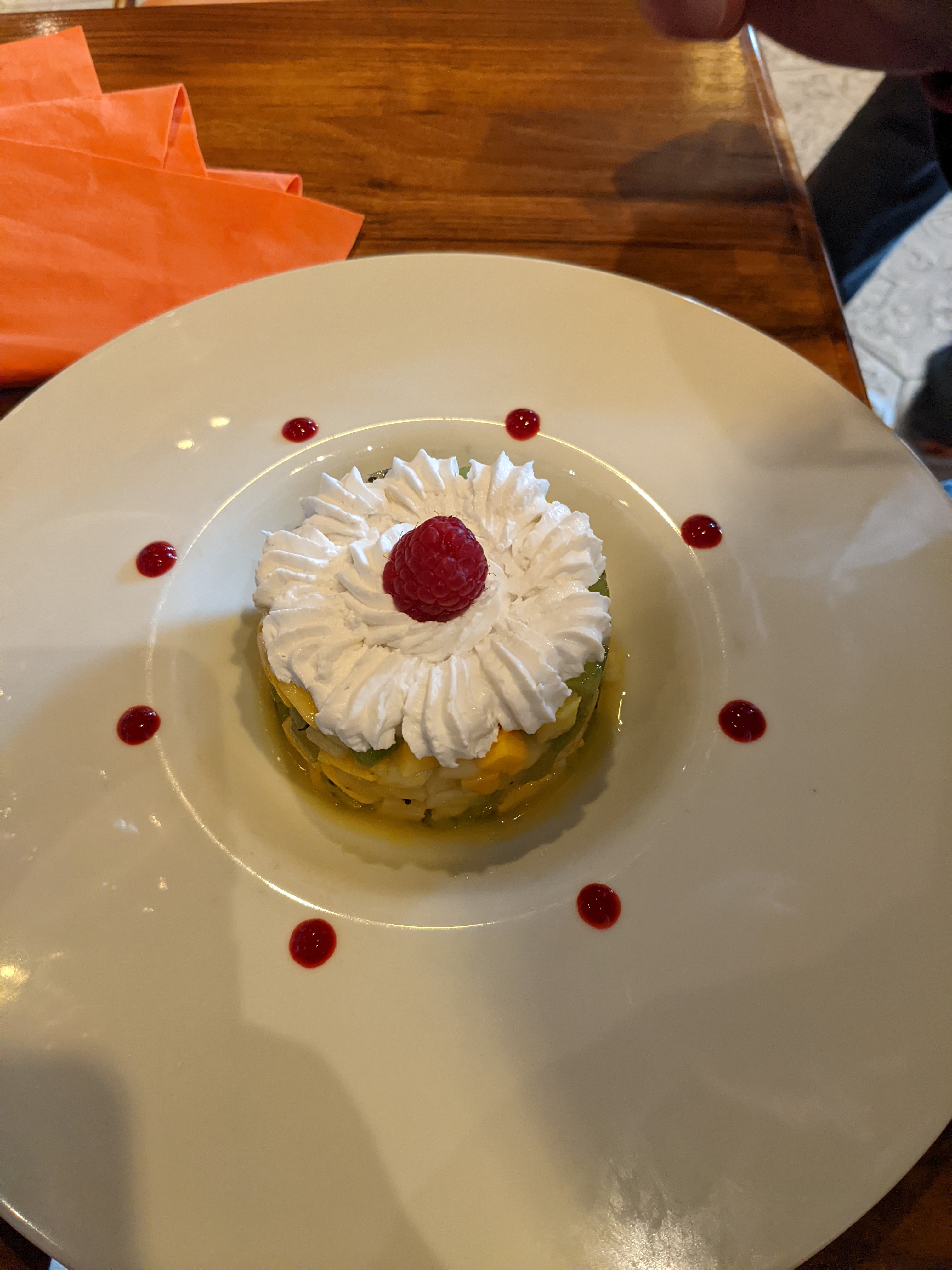 Très bon accueil, on s'occupe de vous même avec du monde on a pris la suggestion du chef magrets à la framboise en dessert juste excellent dome glacé aux fruits avec son coulis de chocolat bon rapport qualité prix