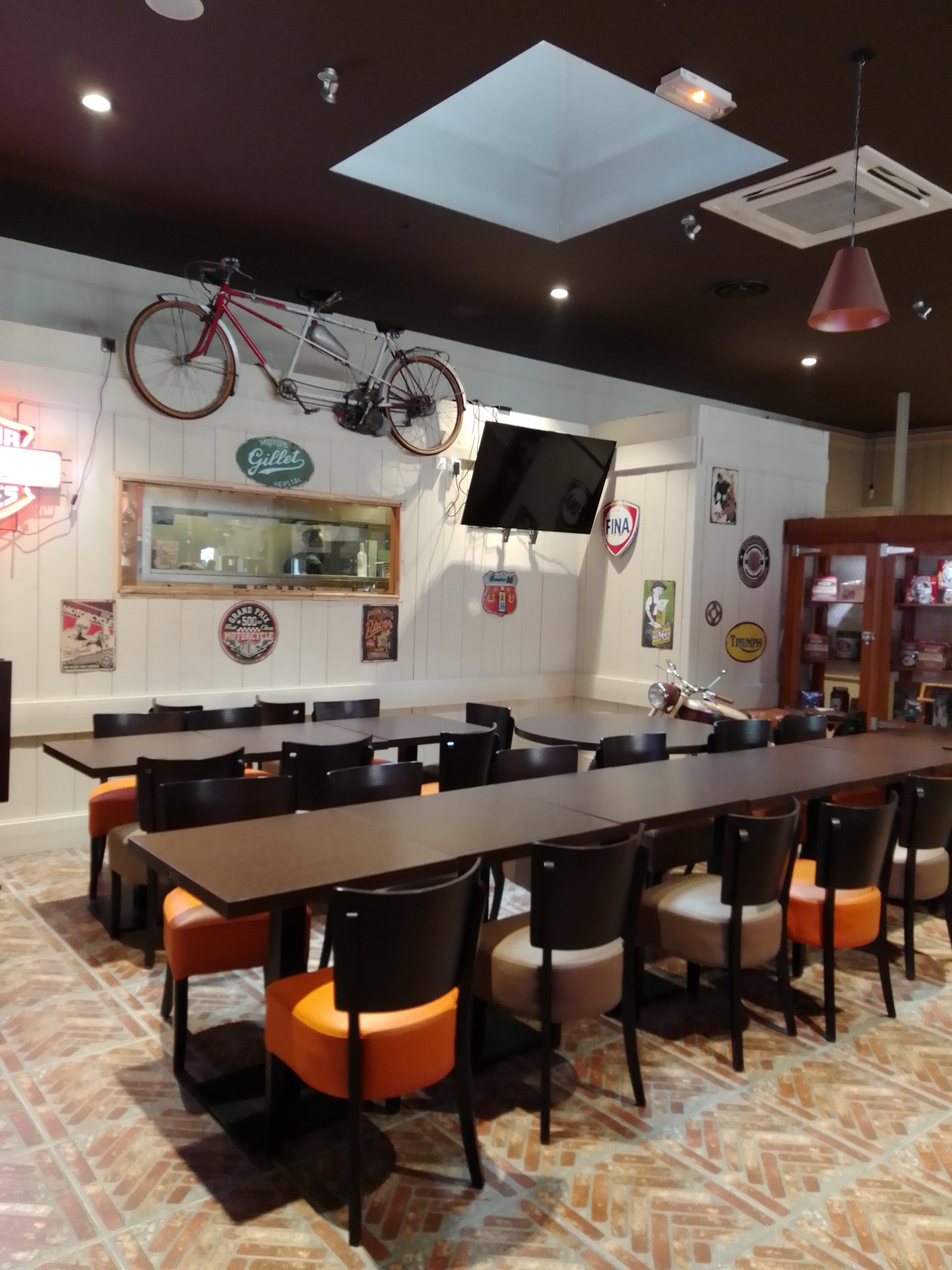 Un décor époustouflant, un personnel aux petits soins, une carte bluffante et un régal pour les papilles. Vous ne regretterez pas votre halte dans ce vrai musée des 50's-60's dédié à la marque Harley-Davidson.