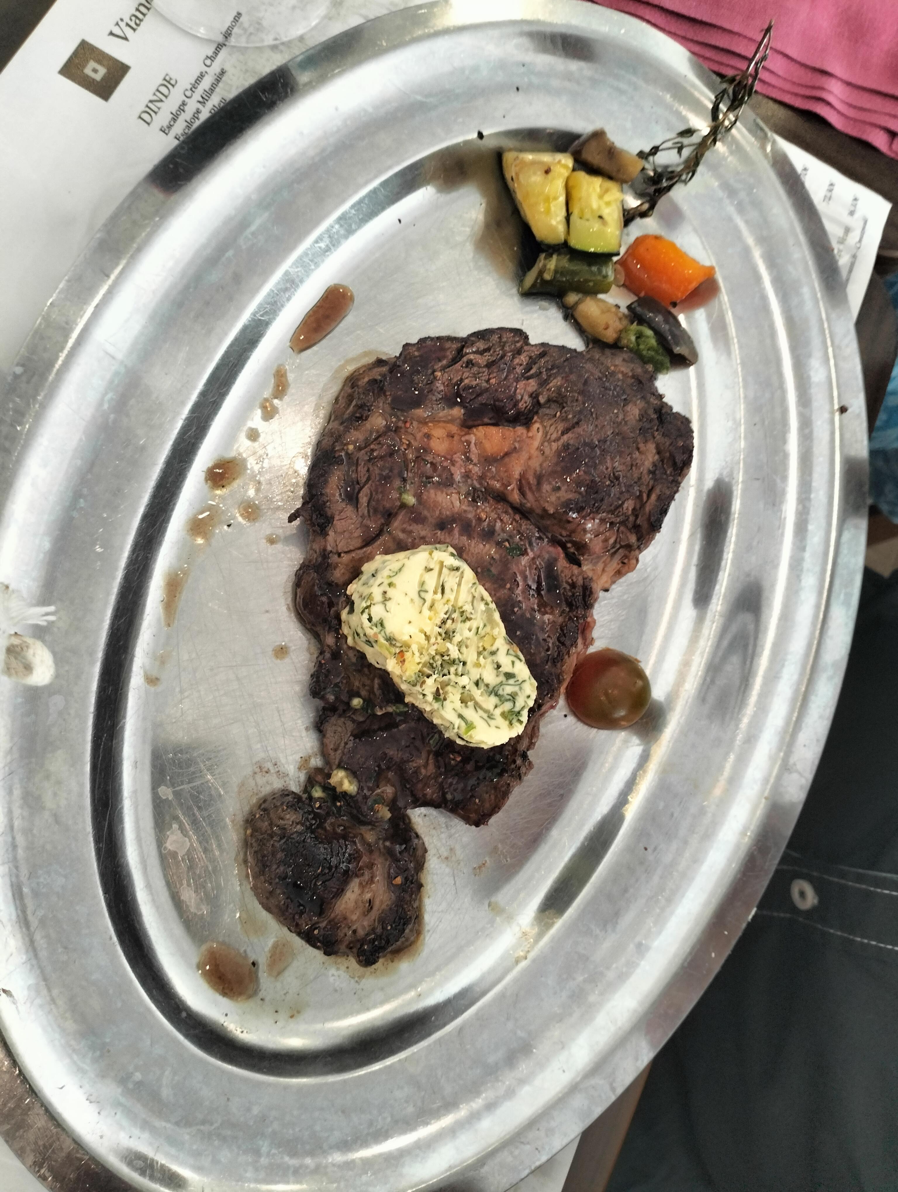 Y a t il eu un changement de cuistot ? Filet de bœuf cuisiné à la façon pot au feu et Pommes de terre calcinées ! Le gérant pas concerné par la clientèle … Heureusement que la serveuse toujours Souriante a fait de son mieux !