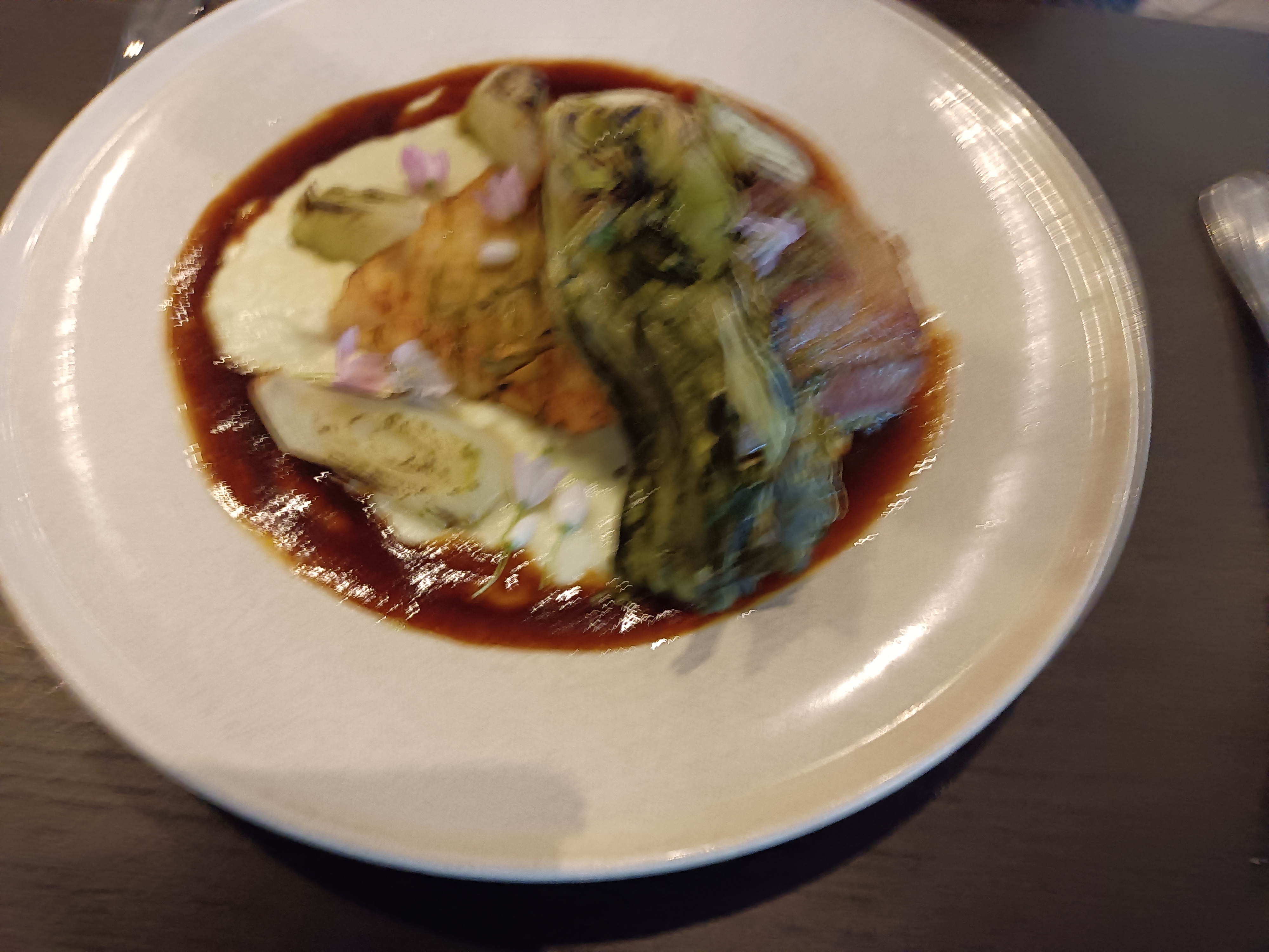 Dîner hier soir, pas de réservation mais ça va pas de souci, bon accueil, aiguillé par le très aimable réceptionniste de l'hôtel 👍, dîner cosy, beaucoup de saveurs, vraiment très bon, service un peu rapide mais ça nous allait très bien, addition 107 a deux avec 1 apéro et 1 verre de vin. Pour amateurs BCBG, Bravo 👌