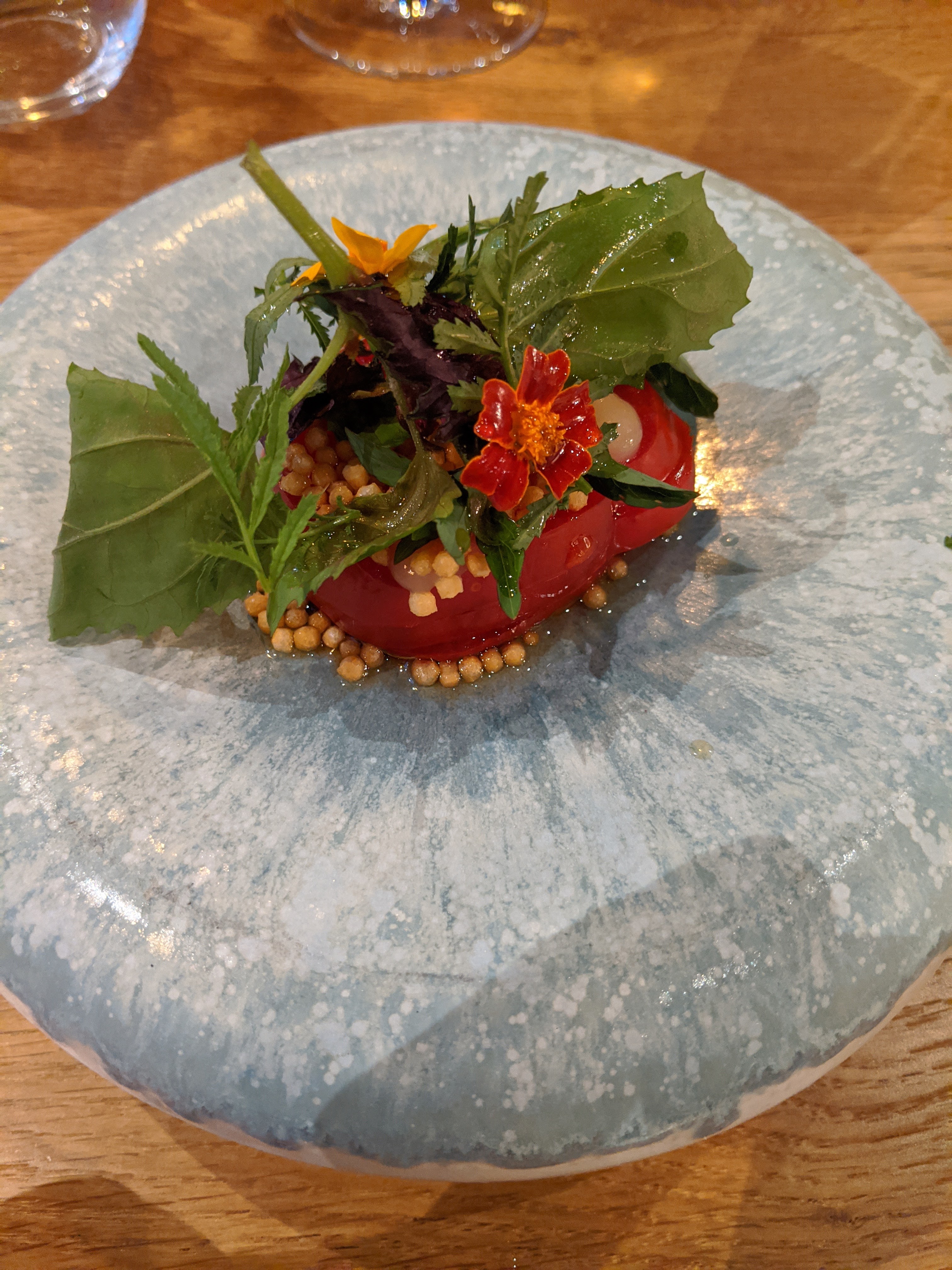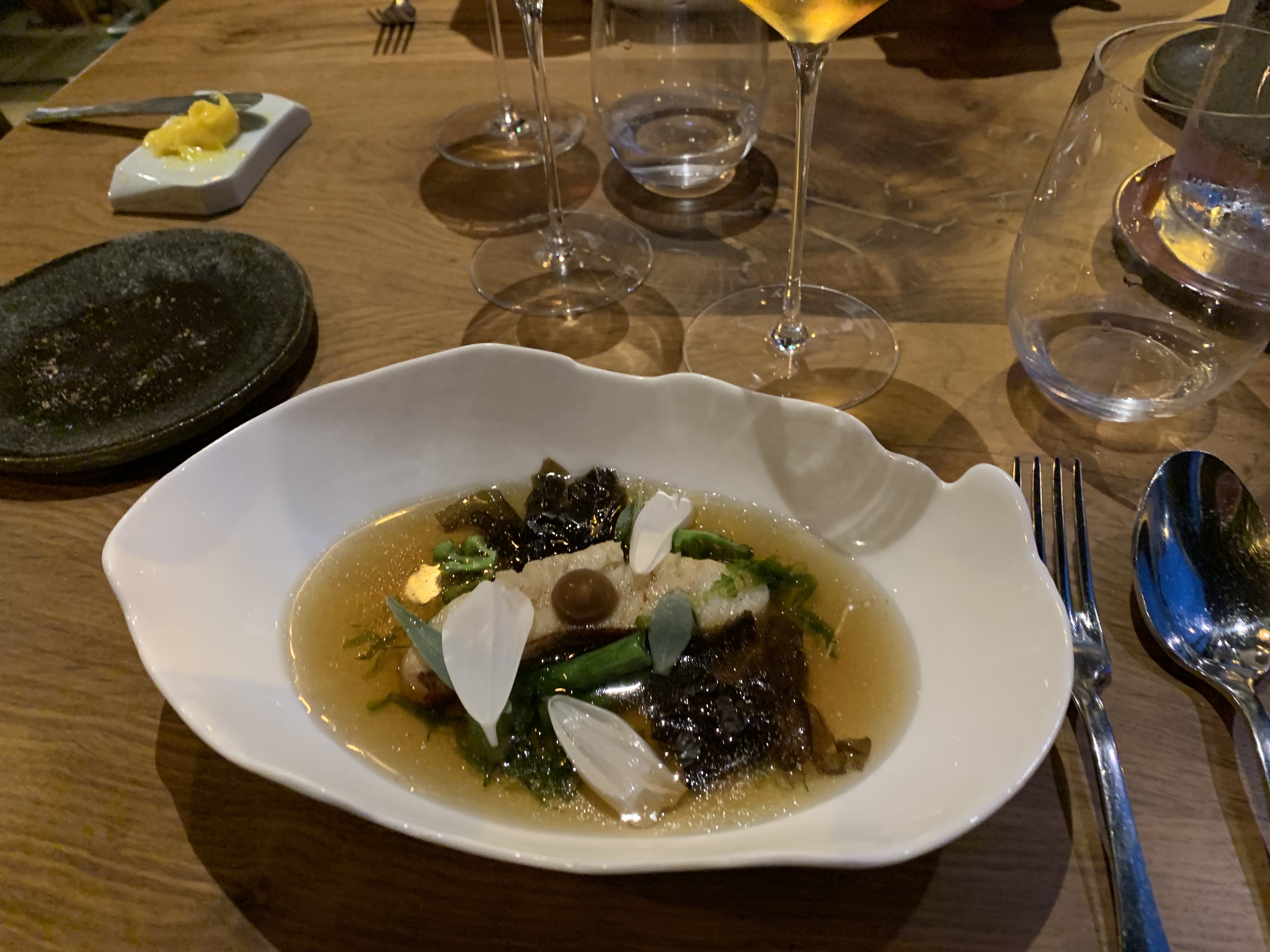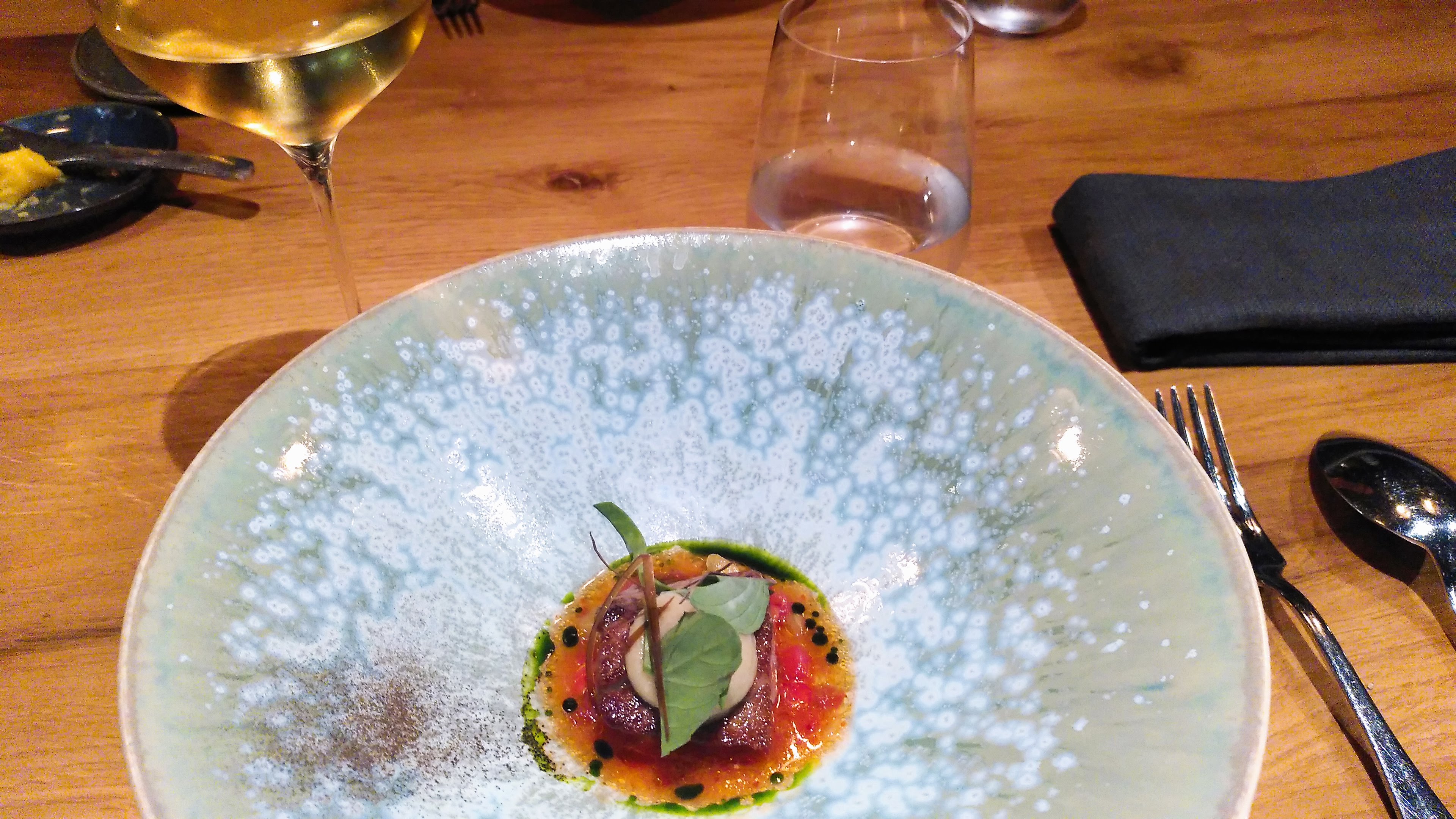 Nous avons eu un repas fantastique ici hier soir. La nourriture était délicieuse, avec beaucoup de saveurs audacieuses et intéressantes mais toujours légère. Grande variation de saveurs, d'ingrédients et de techniques. Le vin assorti était également fantastique, avec beaucoup de vins intéressants. Merci.