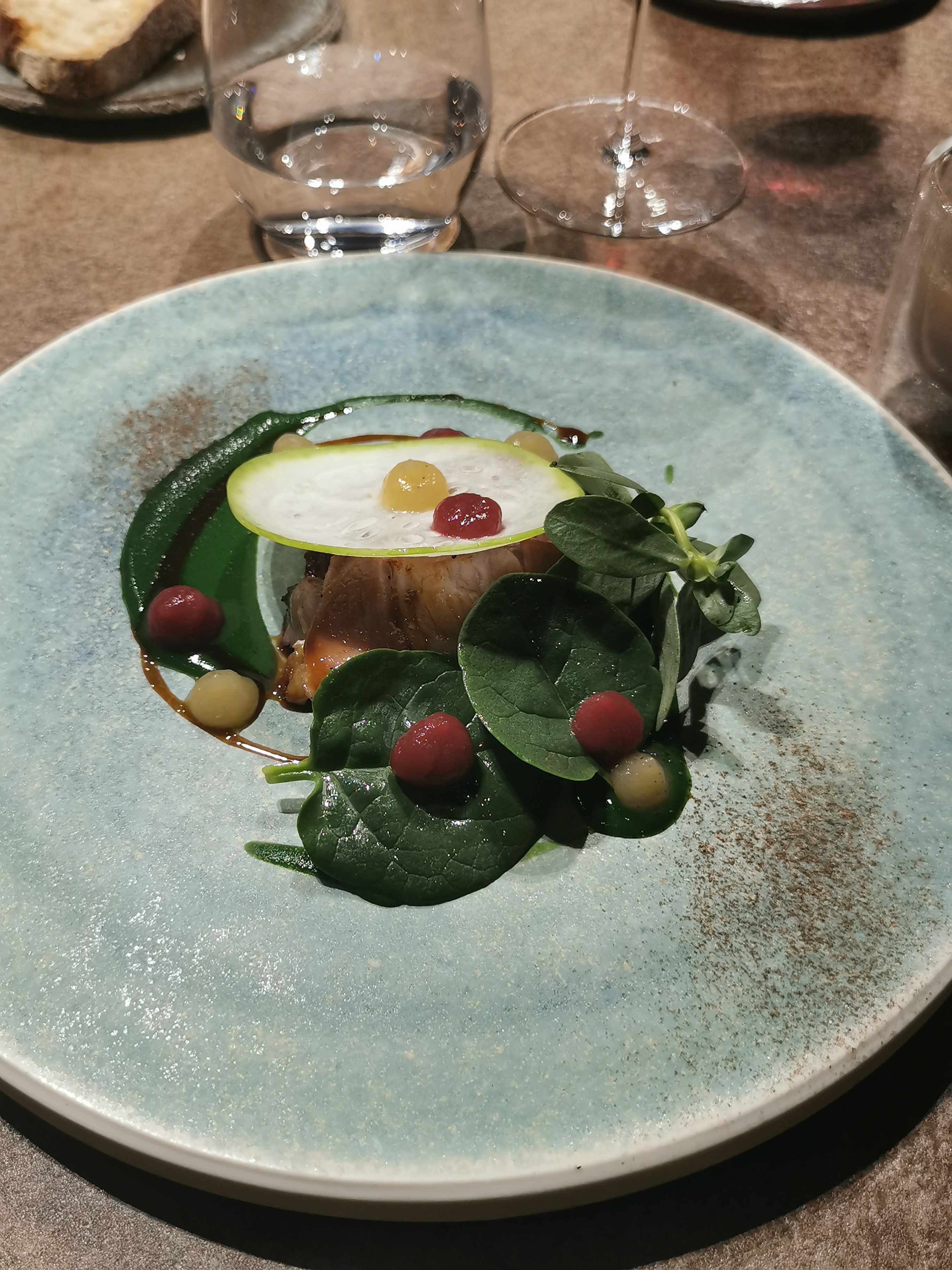 Surprenant . Le chef pour moi est un chorégraphe gastronomique . Menu du samedi soir 9 plats . Travail de très bons produits avec excellence . J ai adore les sensations pour ne pas dire les émotions de ce « gastronomique » Surpris au départ dubitatif puis ravi de cette expérience. Ça n est pas qu’un repas gastronomique, c était une soirée gastronomique comme si j’avais été mangé et voir un balai à l opéra . Vraiment à faire.Le chef est un artiste et metteur en scène de sa cuisine avec une super équipe . Petit moins et désolé pour ça, les verres de vin sont servis à l’économie . C est vraiment dommage.Soyez Gourmand aussi avec le verre de vin. Vraiment . S il vous plait, soyez généreux quand vous servez un verre de vin, soyez classe aussi pour le vin à la hauteur de votre balai artistique gastronomique dans le service du verre de vin Merci pour cette soirée. Peut être que le personnel de service gagnerait à expliquer en amont le menu et la possibilité de compléter avec les verres de vin recommandés sans juste laisser le client lire et demander des explications .