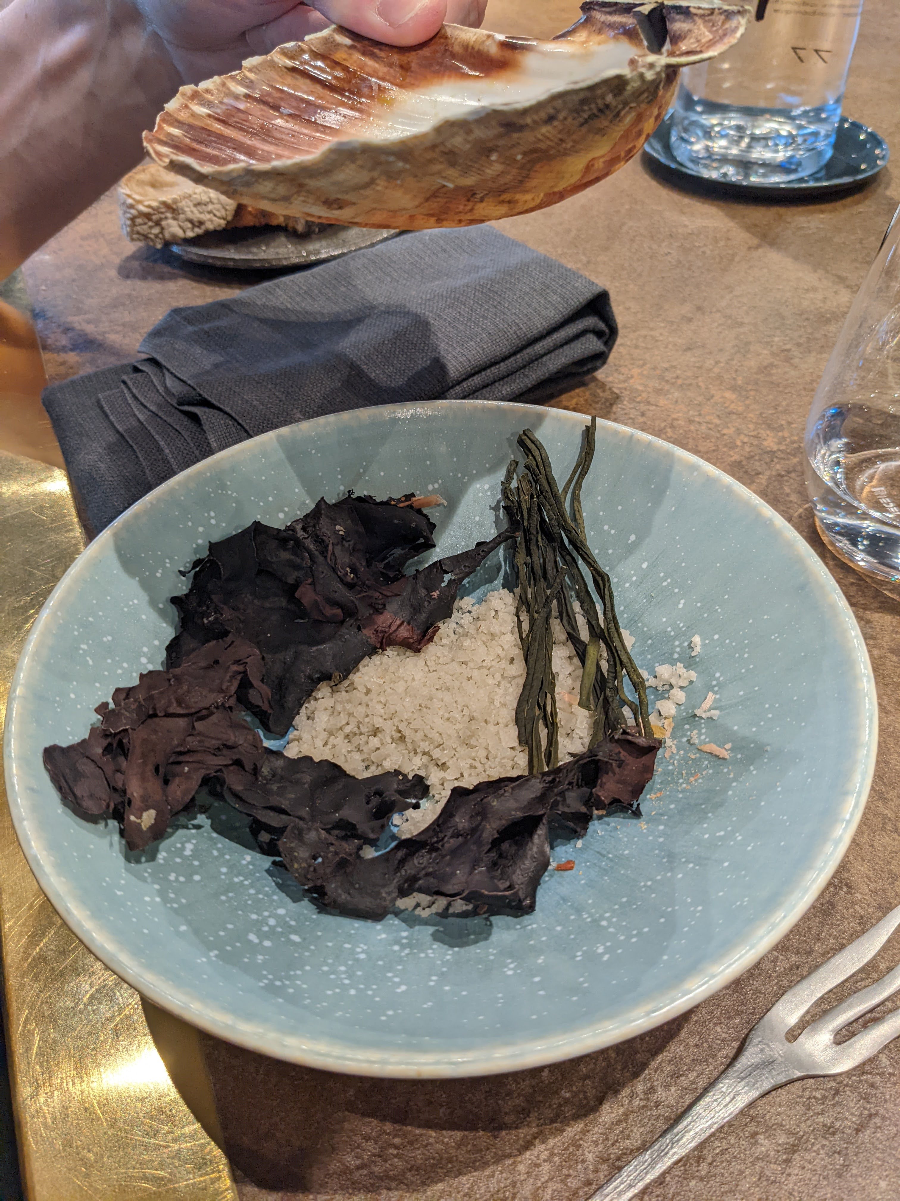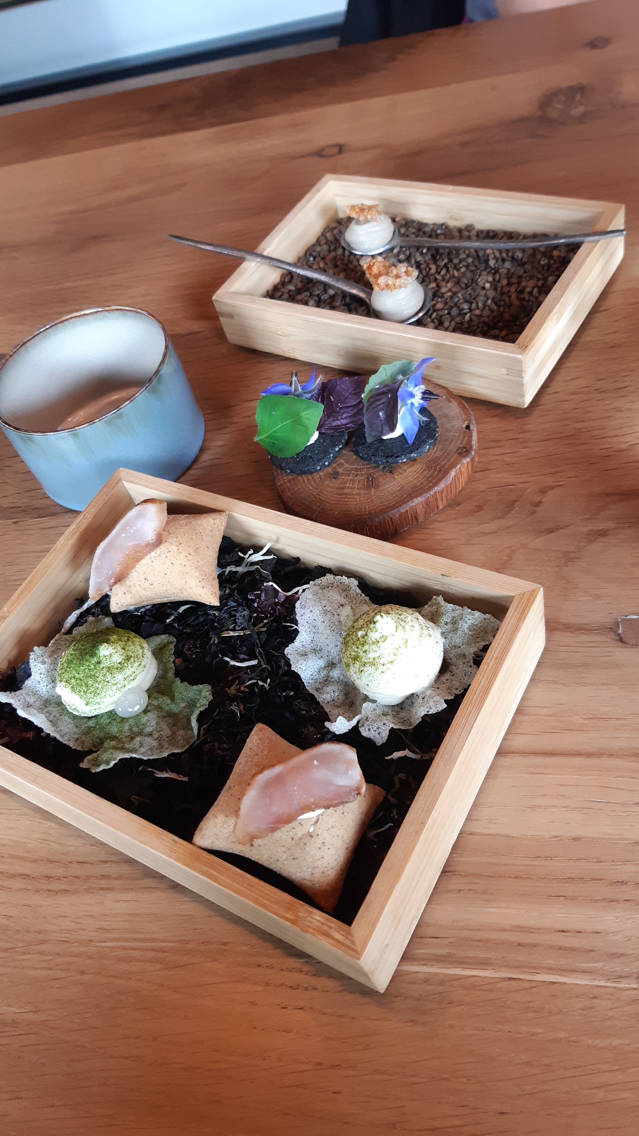 Merci pour votre accueil exceptionnel. Tout était parfait : de la décoration sobre à la cuisine ultra-ouverte, du service soigné et attentionné à la présentation des plats. Je mettrai deux mentions spéciales : l'une pour vous remercier d'avoir tout adapté pour ma compagne enceinte, malgré la difficulté, jusqu'à nous proposer un accord au thé. La seconde pour la très grande originalité des plats qui ne ressemblaient à rien de ce qu'on connaissait et qui étaient très réussis. Des marqueurs bretons forts, des influences asiatiques palpables. Bravo pour la cohérence parfaite de tous les plats. On comprend que le menu a été pensé comme un ensemble, un concept total.