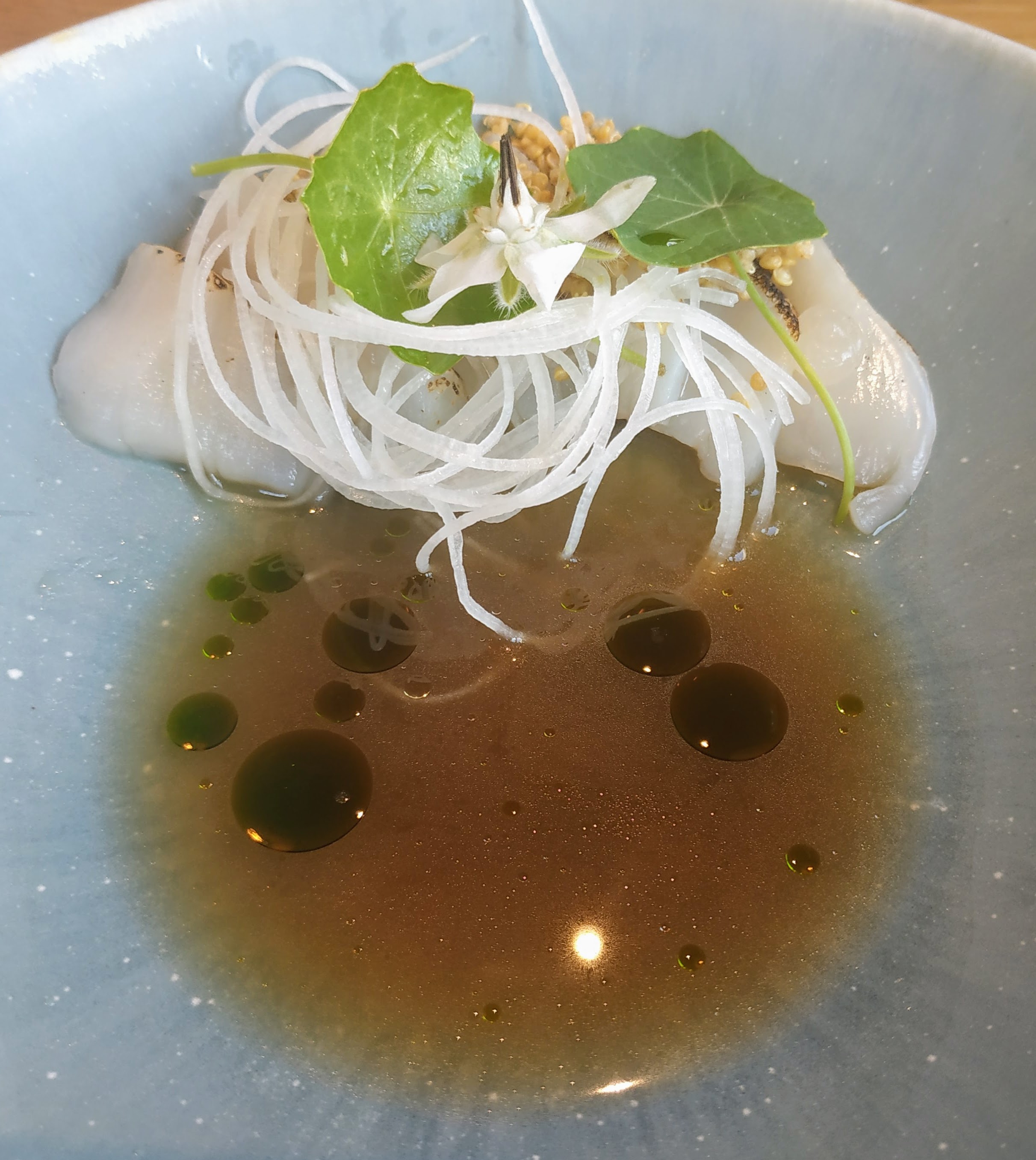 Un voyage gustatif au pays du soleil levant avec des vases bien locales. Des produits magnifiques. Des cuissons admirables. Un accueil et un service convivial mais attentionné et très professionnel. Et même les cuisiniers qui viennent vous apporter et présenter leur superbe travail. Des plats qui s'enchaînent en toute légèreté... bref une très belle soirée. Merci à toute l'équipe
