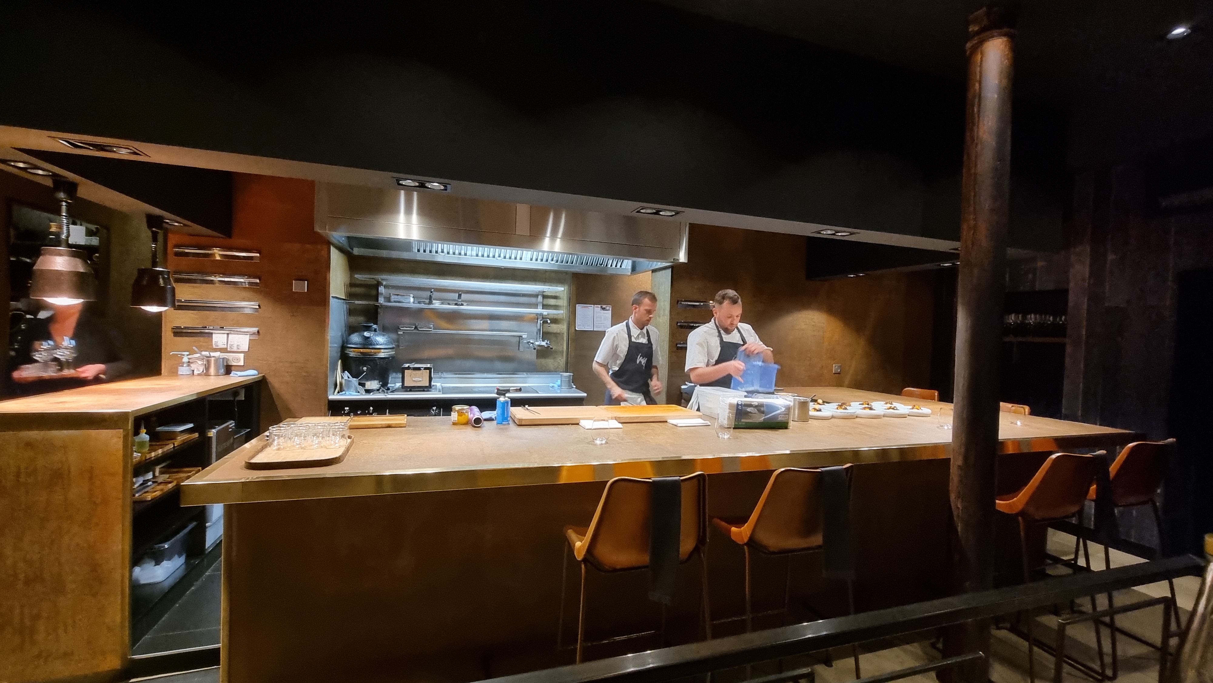 Si vous êtes deux personnes, je vous conseille de demander à être au comptoir. On peut admirer le travail de la brigade, on est en immersion totale et on peut même poser ses questions au chef! J'ai trouvé qu'il y avait beaucoup d'acidité dans les plats (on aime ou on aime pas) perso j'ai eu un peu mal à l'estomac après ça! Mais c'était très bon malgré tout. La déco est très chic grâce à sa simplicité et service à la hauteur de l'étoile.
