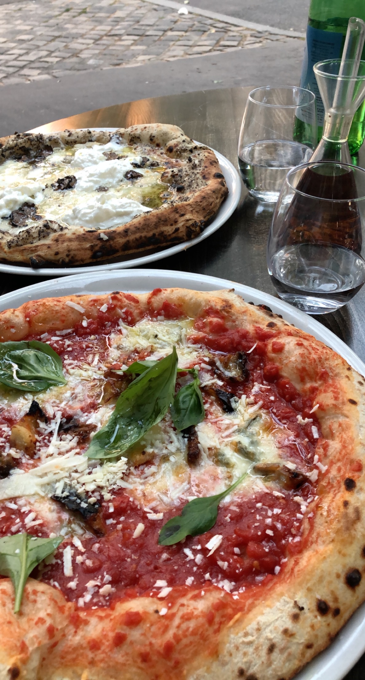 L'une des meilleures pizzeria de Paris. Nous n'avons pas goûté les pâtes donc bien qu'elles aient l'air excellentes dans l'assiette des voisins je ne me prononcerai pas. Pour ce qui est des pizzas elles sont aussi bonnes que bourratives. La pate est fine mais les bords copieux car volumineux (pas seulement gonflés). La pizza mortadelle/truffe tout bonnement la meilleure de Paris selon moi. Idem pour la pizza pesto verde, je n'ai jamais mangé meilleure. Les produits sont de qualité, ça se sent à tous les niveaux ! L'assiette jambon/burrata excellente également, le jambon est coupé très finement, il fond en bouche. Très bonne huile d'olive soit dit en passant. Vraiment une top adresse pour les amateurs de cuisine italienne, je recommande !! Le personnel est très sympathique, à souligner.
