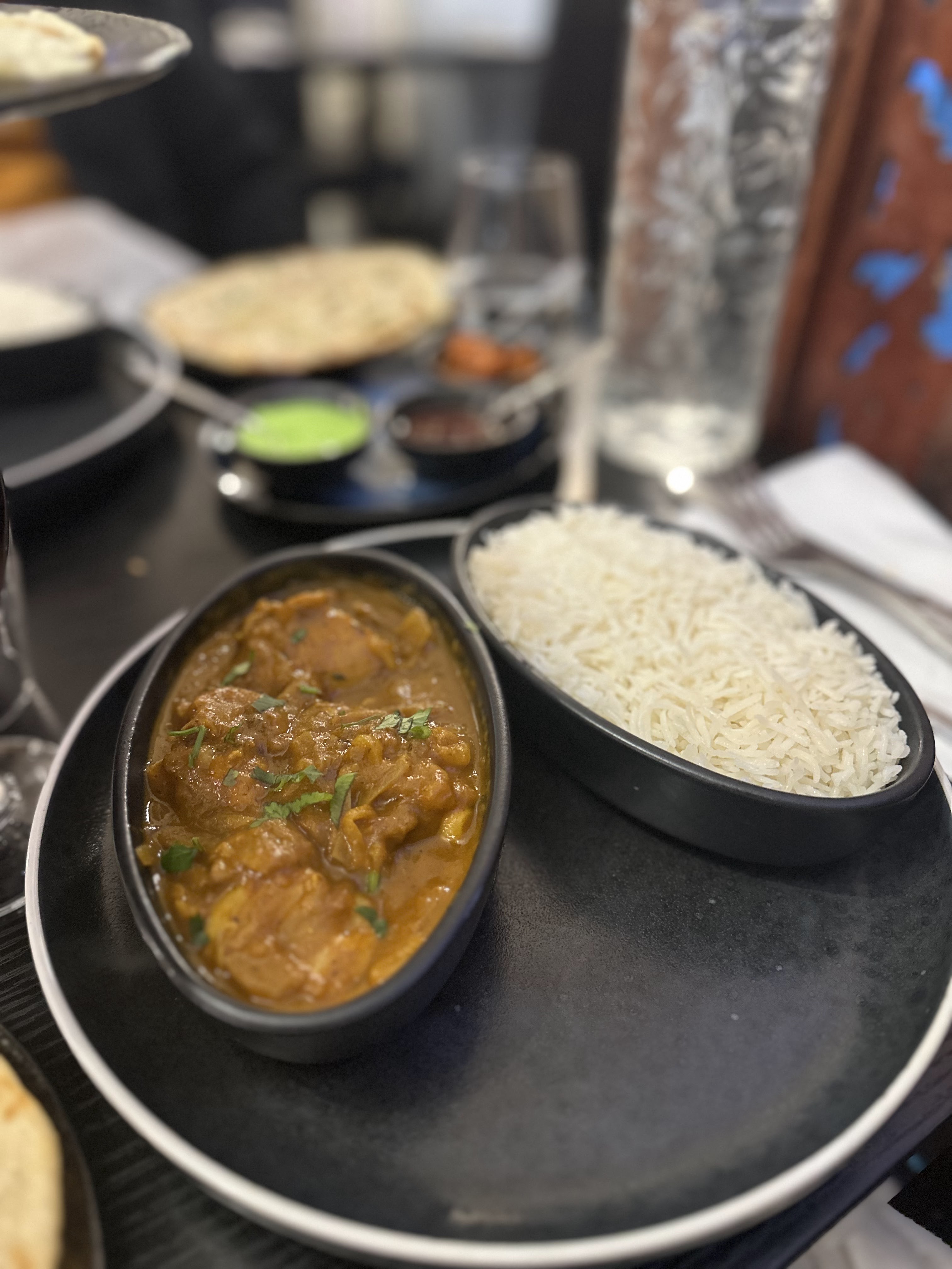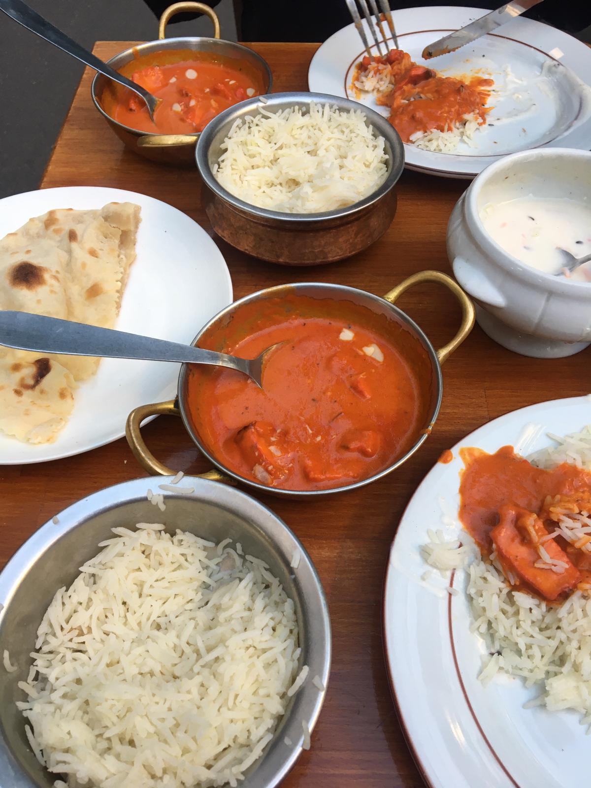Je trouve ça très dommage que le menu midi soit servi sur un plateau en métal comme si l’on était en prison ou à la cantine… Je ne m’attendais pas du tt à cela. L’entrée précisait « mix pakora » et lorsque on regardait à quoi ça correspondait sur la carte on voit bien qu’il est écrit un beignet de chaque : poulet, legume, crevette. Or je n’ai eu que des beignets aux legumes car je pense que c’est les moins chère évidemment… La salade n’avait rien de spécial ce n’était que de la laitue qui ressemble à la salade McDo. J’ai pris le butter chicken, il est bon mais il n’y avait clairement pas assez de poulet et le riz basmati n’a rien de transcendant. Enfin le dessert étant servi en mm tant que tout, je l’ai mangé froid alors que le Gulab Jamun se mange chaud. J’ai l’impression que lorsqu’on prend le menu midi on nous fait ressentir que l’on mange pas cher et du coup la nourriture n’est pas de la mm qualité que si on avait pas pris le menu midi. C’est dommage car les serveurs sont adorables et le service est rapide mais je pense que lorsque on y va il ne faut peut-être pas prendre le menu midi pour tester la vrai qualité. Ceci dit le Naan est délicieux.