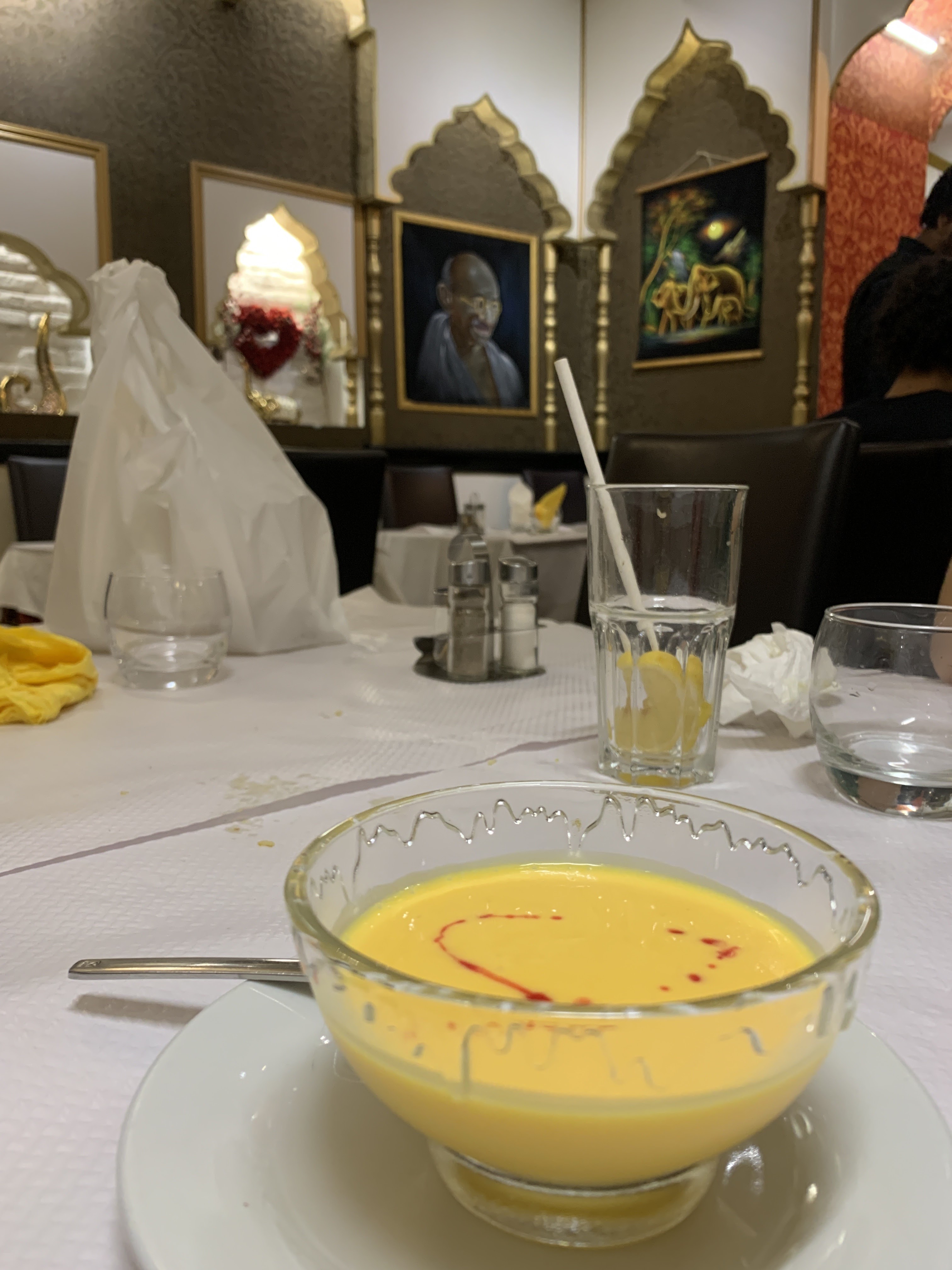 La déco du restaurant est superbe ! Le serveur est sympathique et attentionné. Les plats étaient bons et chauds. Un peu cher les samoussas (deux dans l’assiette pour 5€ je crois). Mais sinon c’était top ! Et on a eu une boisson offerte ♥️