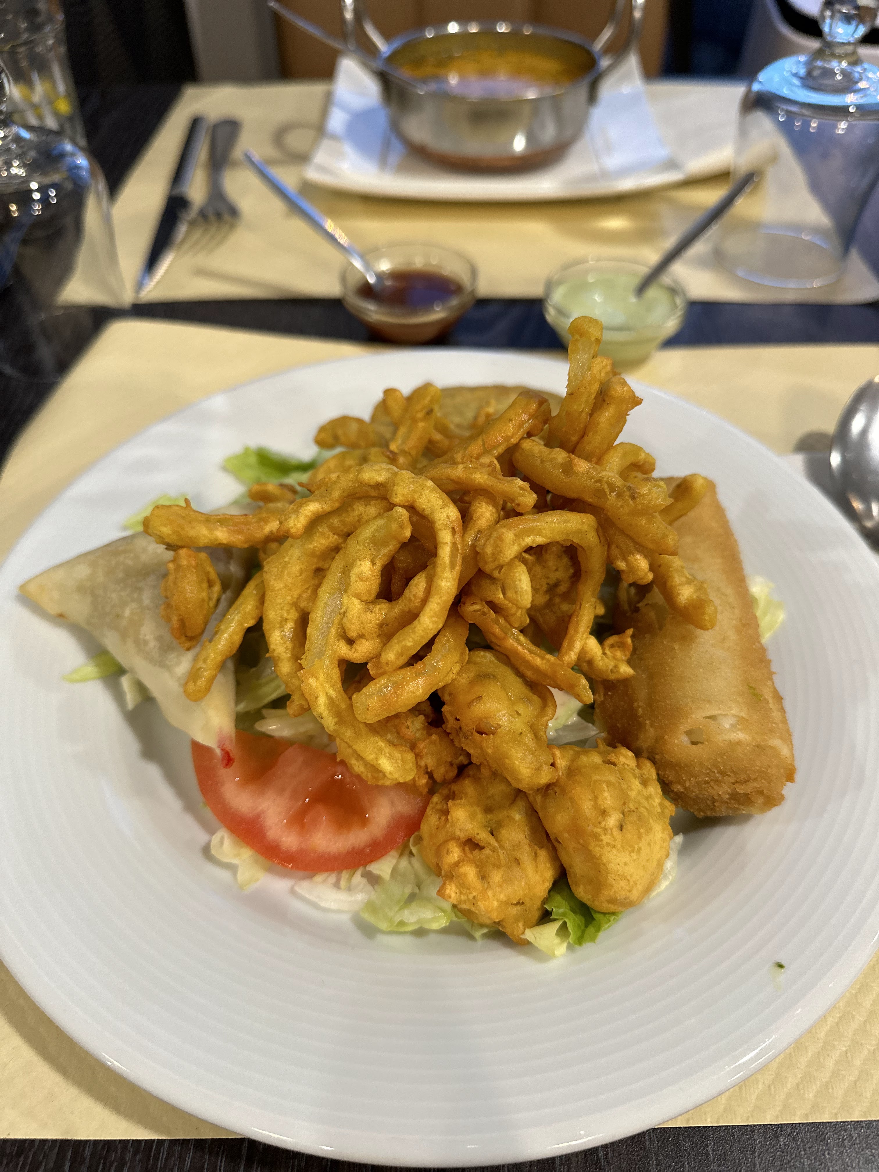Des plats copieux et savoureux, mais attention toutefois aux plats épicés. Nous avons testé un Curry de Madras, noté comme légèrement épicé sur le menu, qui nous a tenu chaud pendant toute la soirée 😄 Le patron et sa serveuse sont attentionnés et sympathiques, et le personnel de cuisine dynamique, aucune attente entre les plats malgré un restaurant complet. Une belle découverte.