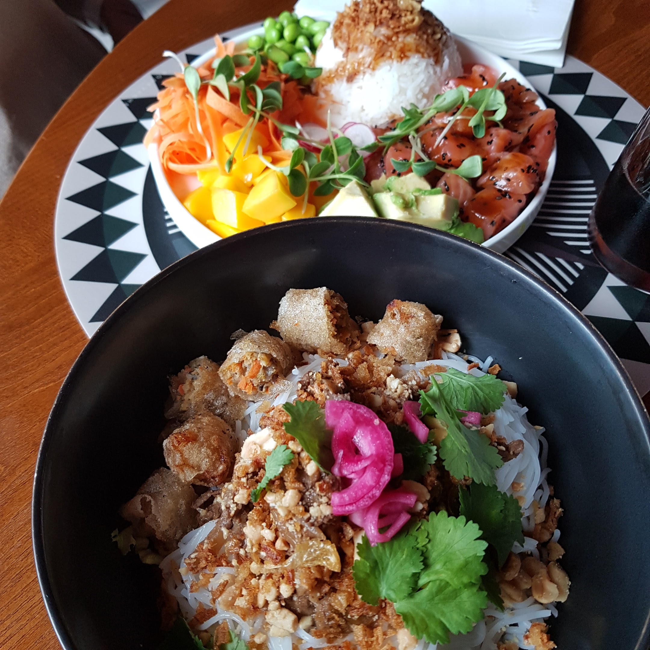 Restaurant aux infliuences asiatiques et médittéranéennes. Service sympatique. La nourriture est correcte, mais rien d'extraordinaire.