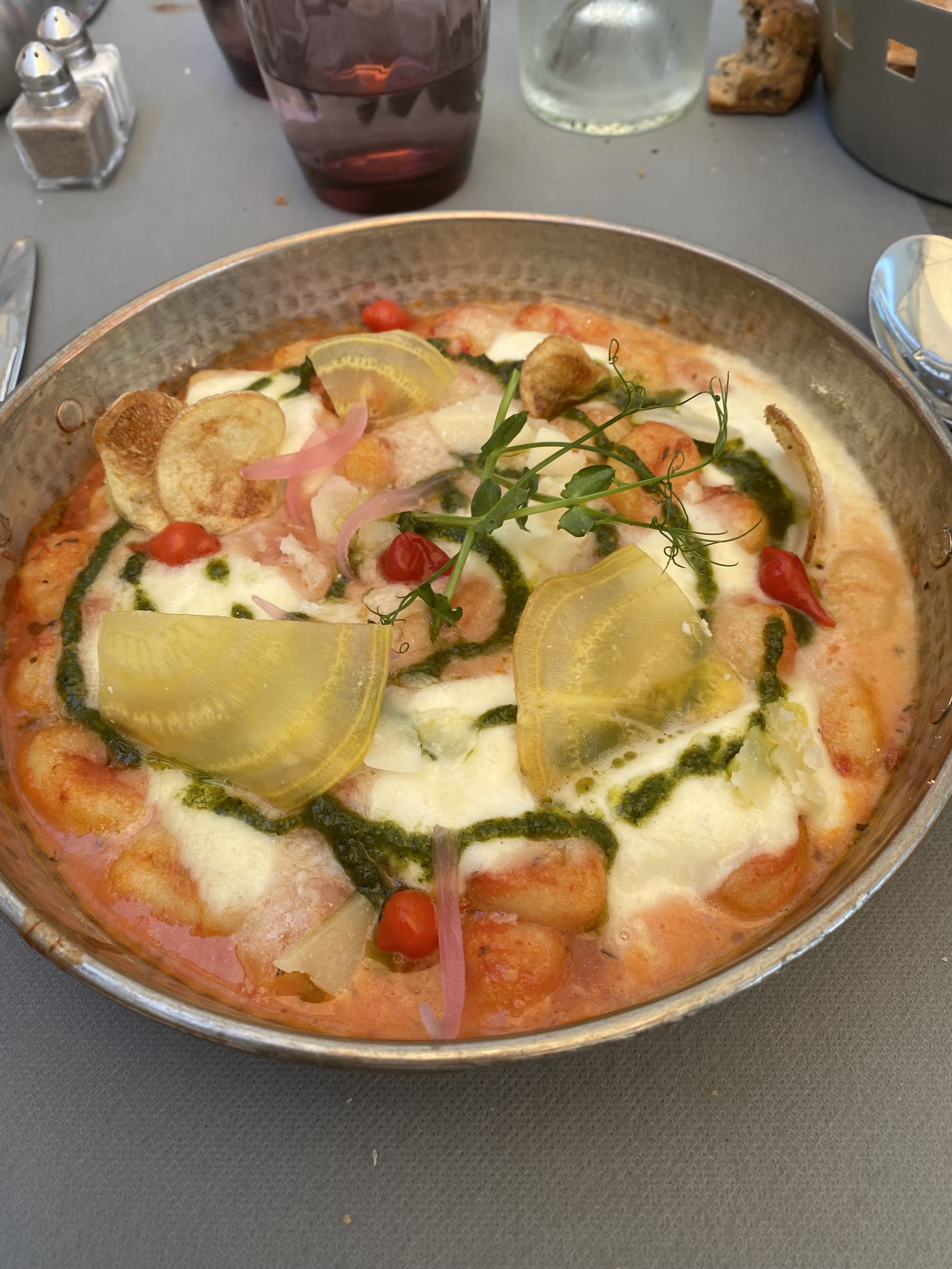Si vous vous fiez au lieu ça surprend. Et pourtant c'est une pépite qui se trouve derrière. Chaque plat, chaque association match. C'est très réussi. Si comme moi vous en avez marre d aller payer une fortune pour de la médiocrité ici vous aurez une cuisine raffinée, originale et dans un budget correct. Une patronne passionnée et un service très agréable. 5 étoiles pas volées
