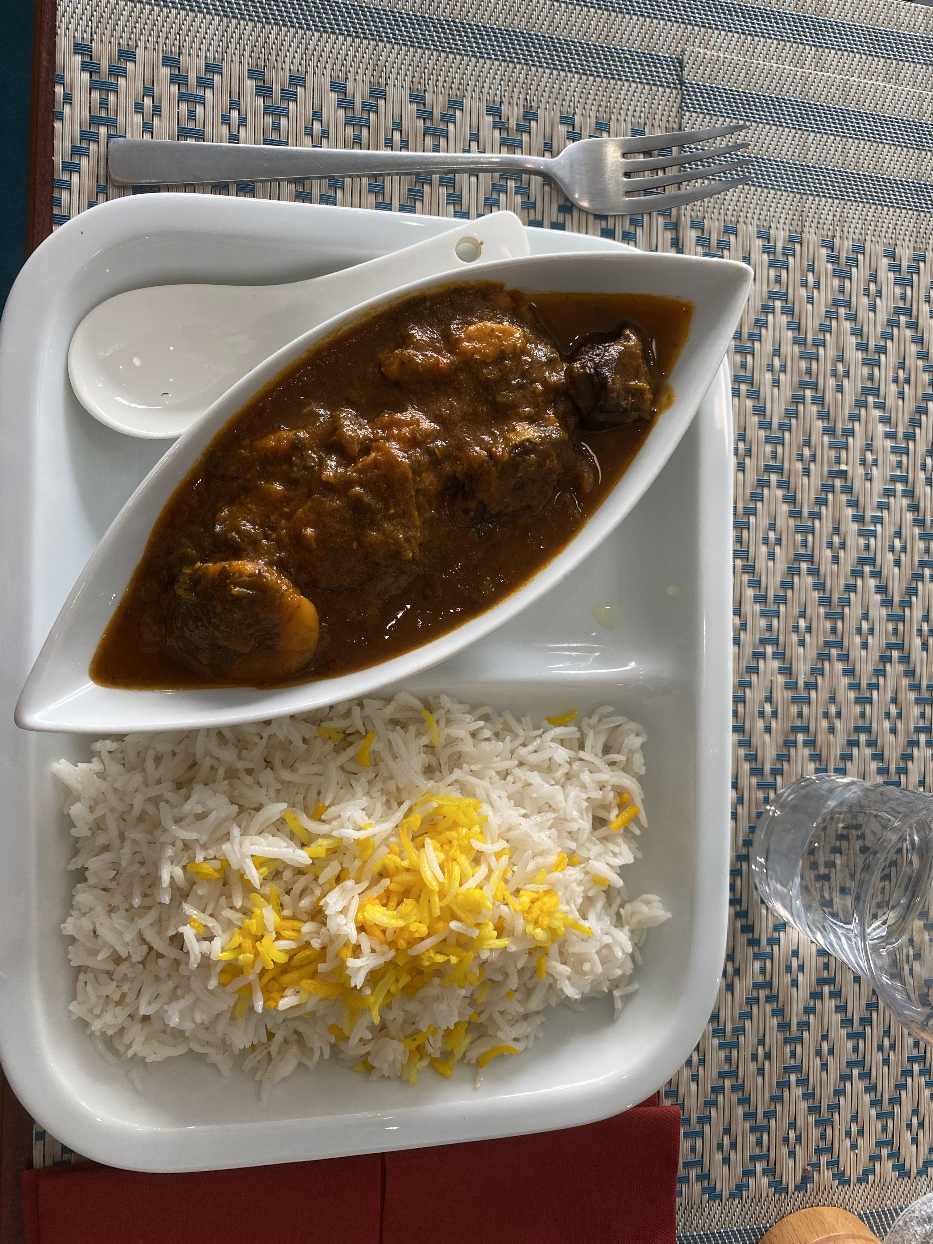 Des plats typiquement iraniens cuisinés par une iranienne de Shiraz, un service impeccable par une jeune iranienne d'Isfahan et de la musique iranienne, bref je ne pouvais pas rêvé mieux. Comme là bas 👍