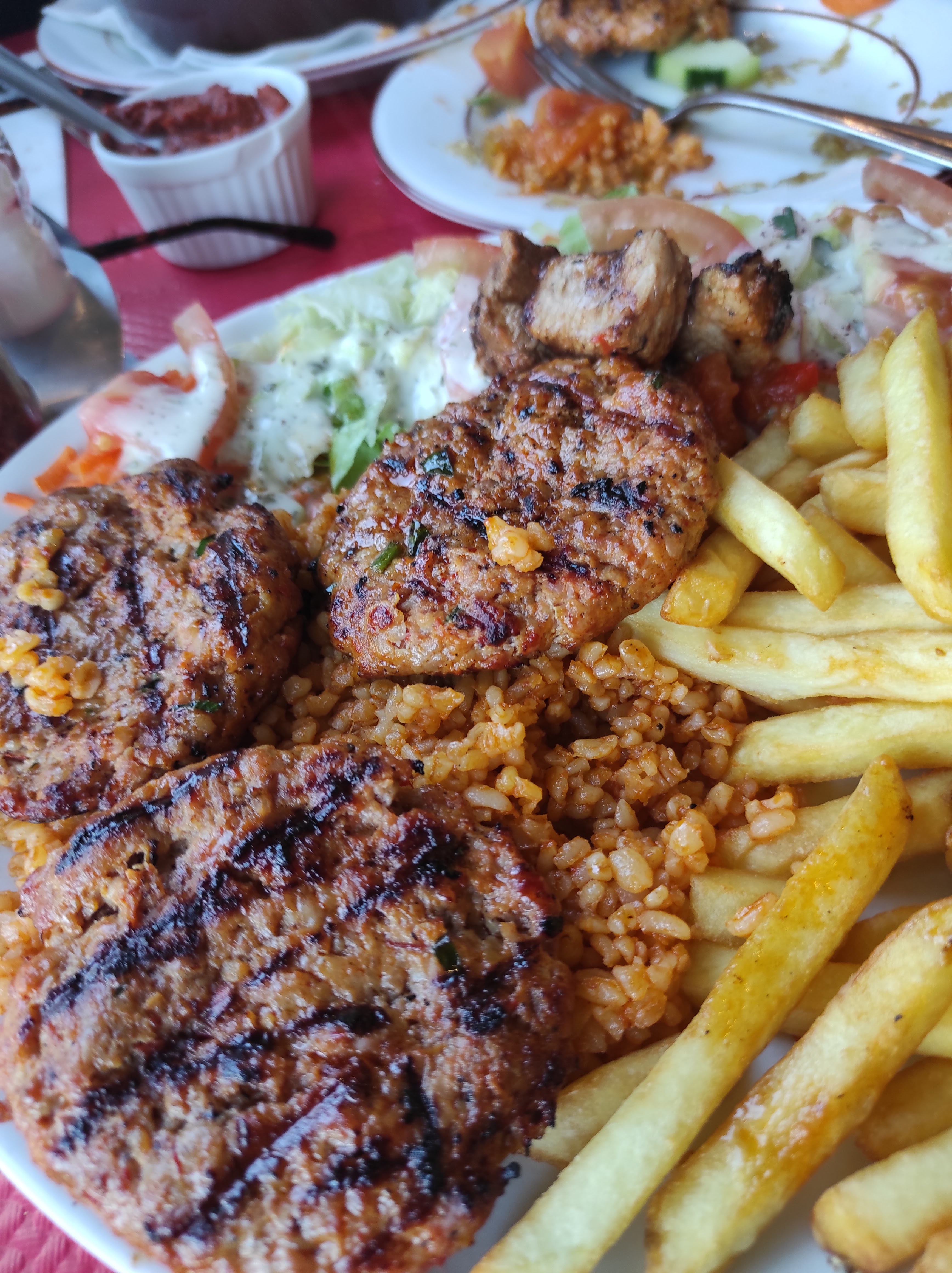 Super restaurant !! On a prit une assiette kofte et kebab et l’autre assiette brochette d’agneau. Les deux étaient très bonnes que ce soit les frites et la viande, tout était incroyablement bon. Nous allons y retourner pour goûter toute la carte. Le service était top 👍