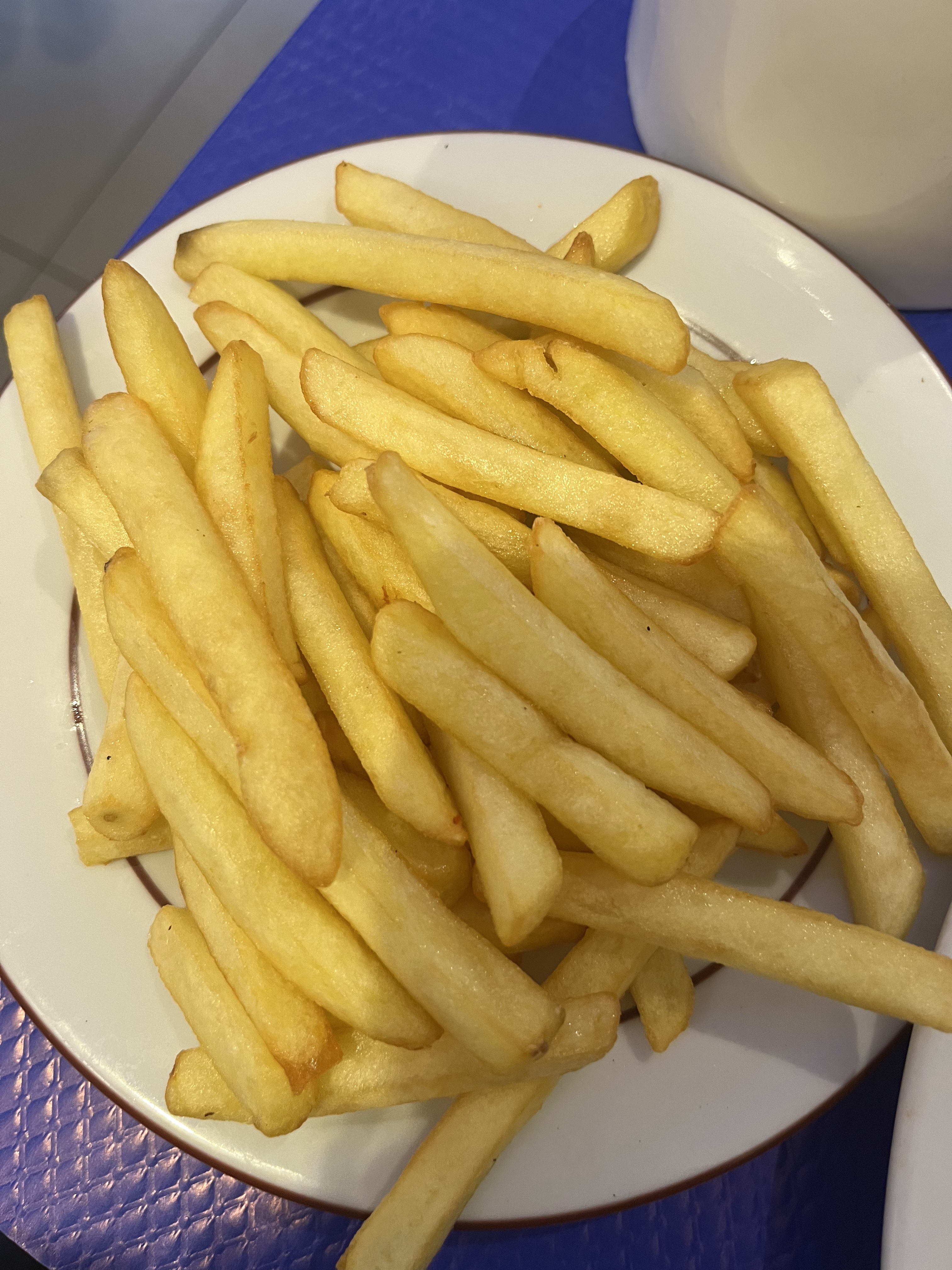 Si peu de frites je n’ai jamais vu ça. Service médiocre avec Ahmed qui empêche les clients de s assoir à une table autre qu’en face de la porte d’entrée