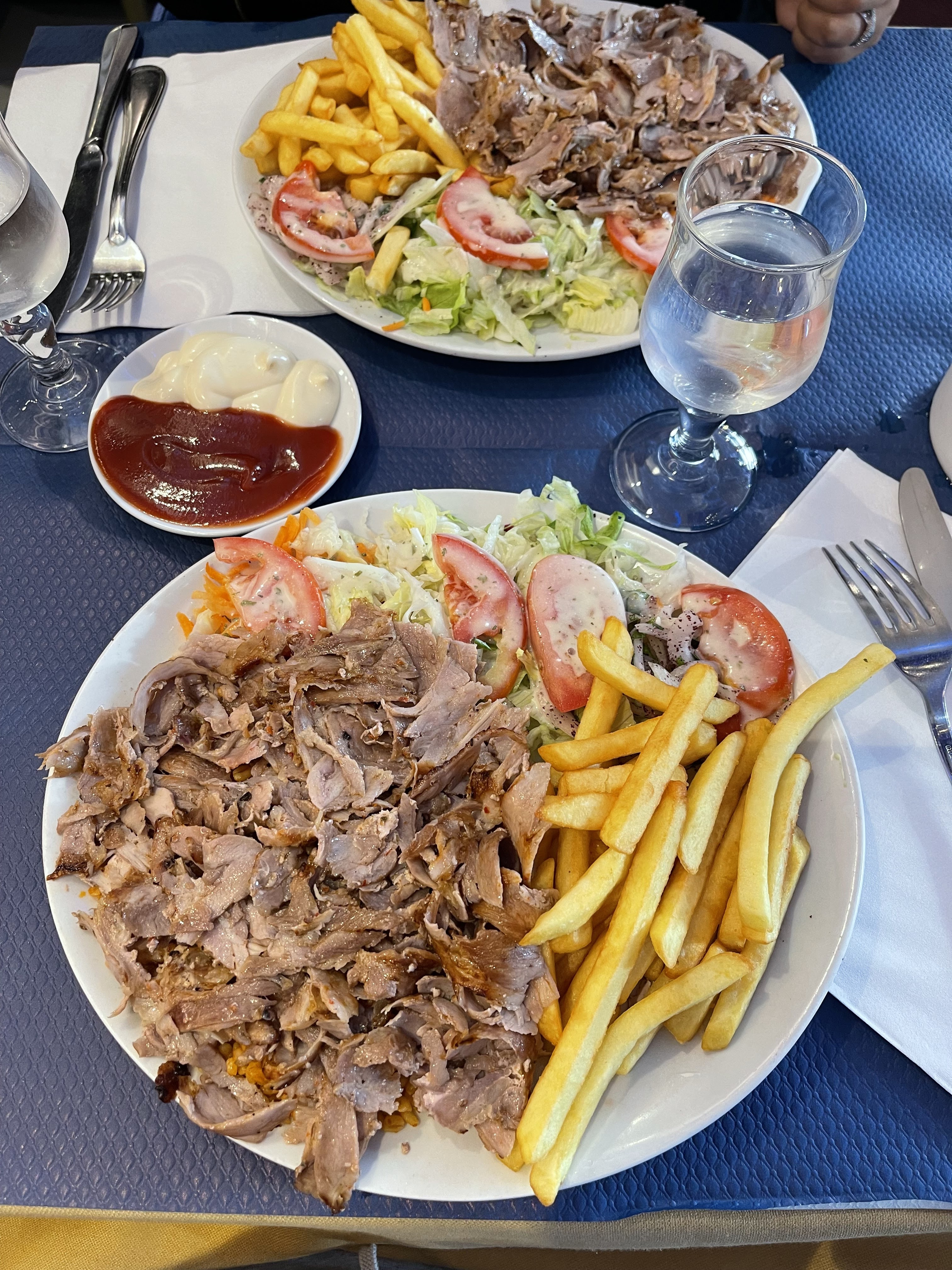 Repas délicieux et copieux ! On a testé l’assiette kebab et la brochette au yaourt et au pain, régalade assurée 😋