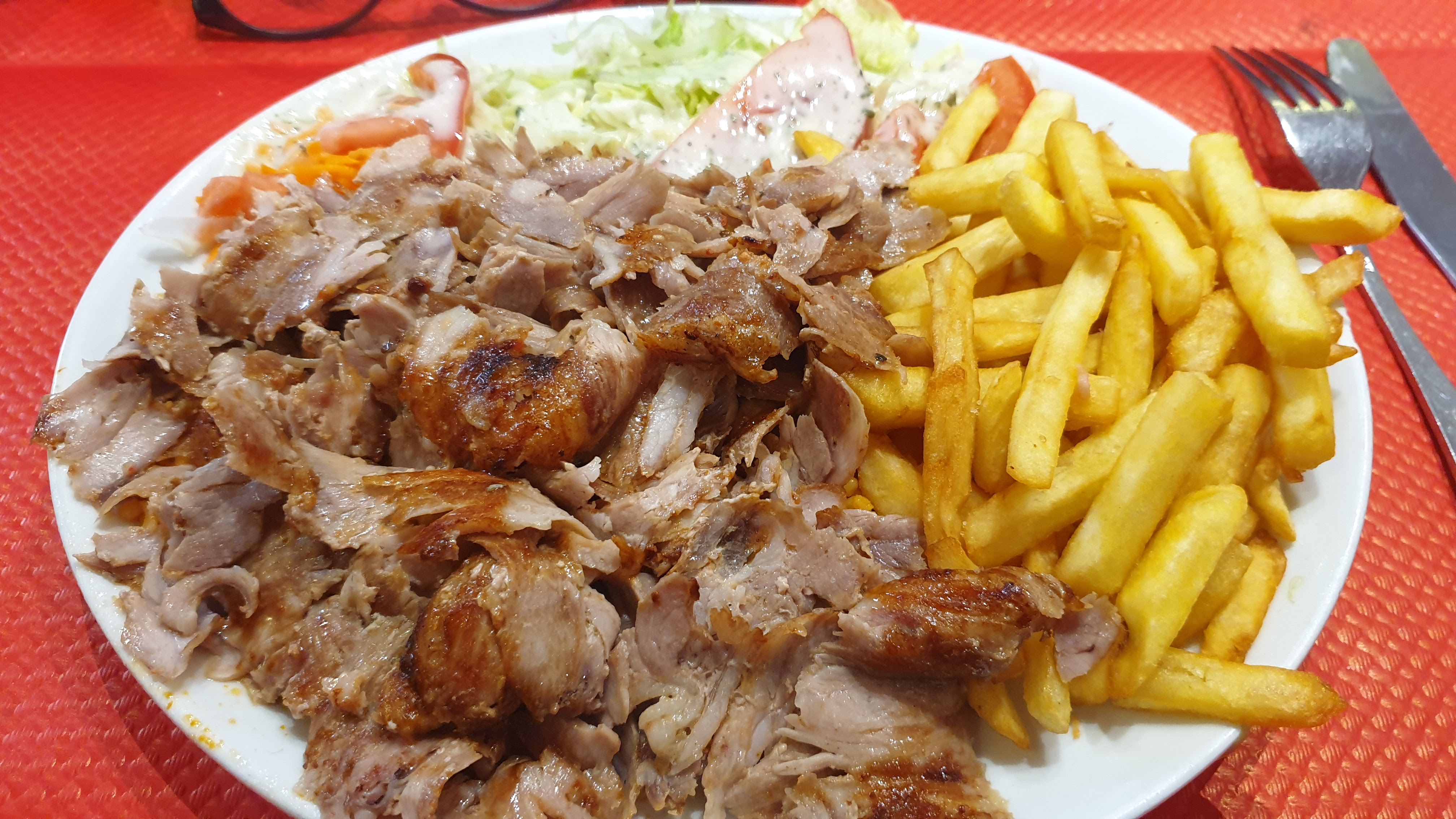 La viande est excellente, un vrai régal. C'est une bonne adresse pour ceux qui aiment manger un bon grec. La viande est de bonne qualité tendre et surtout pas de gras et ça ça fait vraiment la différence. Il y a beaucoup de monde donc je sais que la viande est tout le temps fraîche. juste MAGNIFIQUE.
