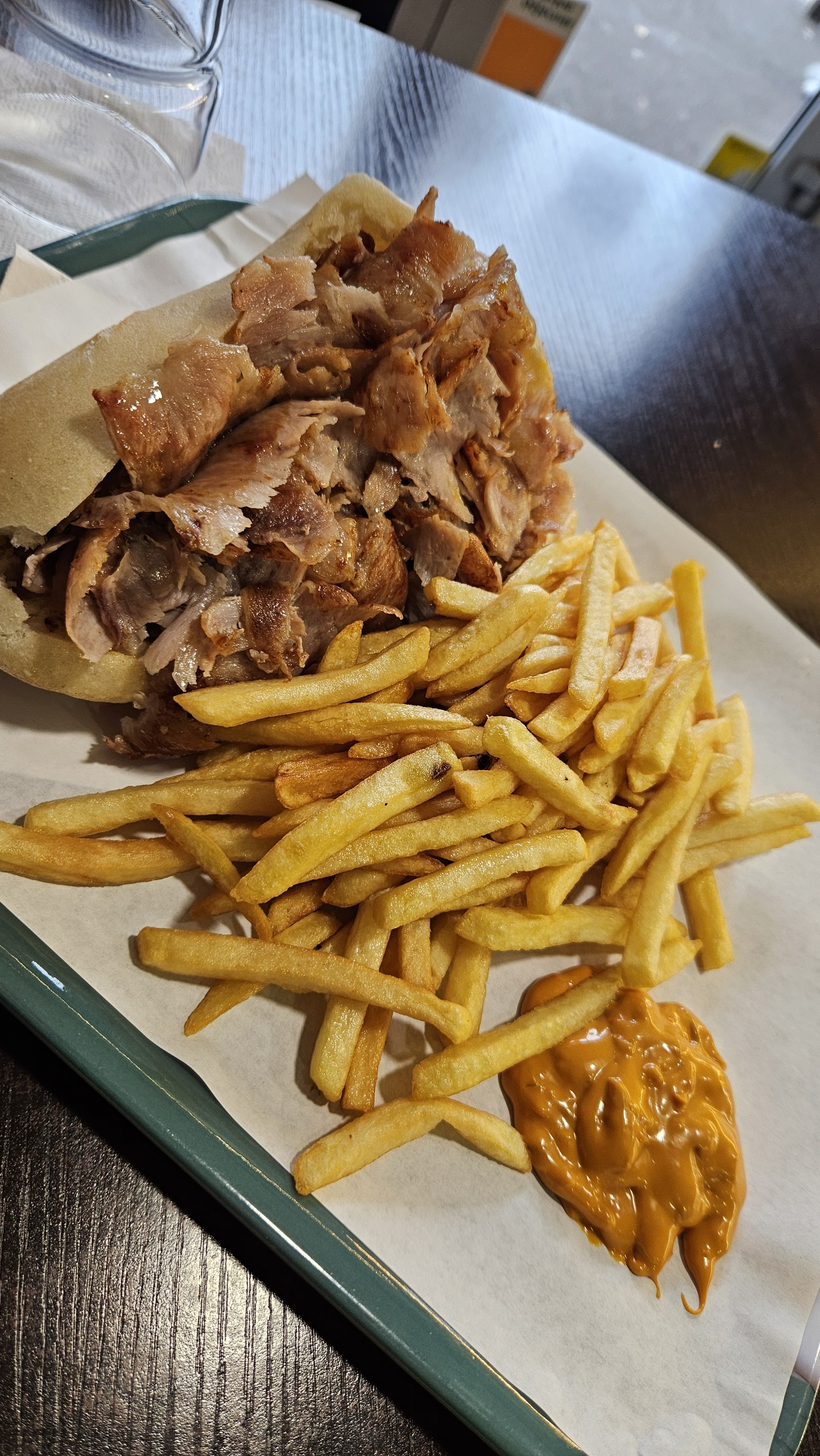 Kébab très bon et très copieux. Le blé est bien assaisonner, le thé pomme très bon. Personnelle très accueillant et la salle intérieur très confortable. Je recommande vivement cet adresse. Si vous pouviez faire les frites maison ce serait un chef d'œuvre 👍🏽