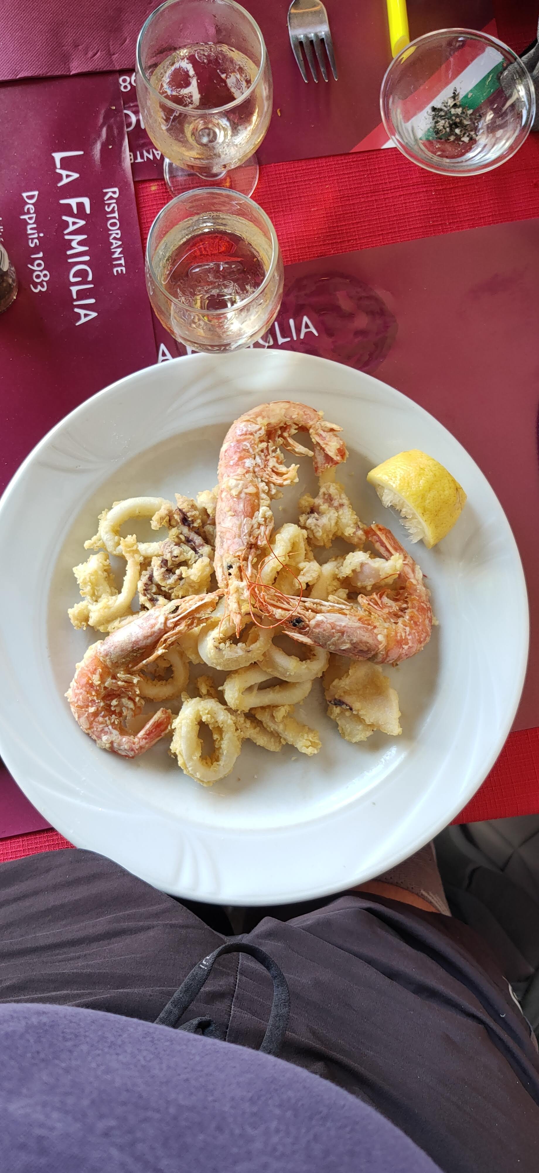 A chaque fois que nous descendons à Antibes nous allons manger à la Famiglia. Tout est bon dans ce petit restau qui ne paye pas de mine : Les immenses pizzas mais encore les cannelonis, les escalopes ou les entrecôtes à la pizzaiola et la magnifique assiette duo d'espadon et calamars avec salade et son petit saladier de pâtes à l'ail . Tout est fait maison vraiment une bonne adresse. Miguel et Catherine nous reçoivent comme de vieux amis de la famille seul bémol il faut absolument réserver.