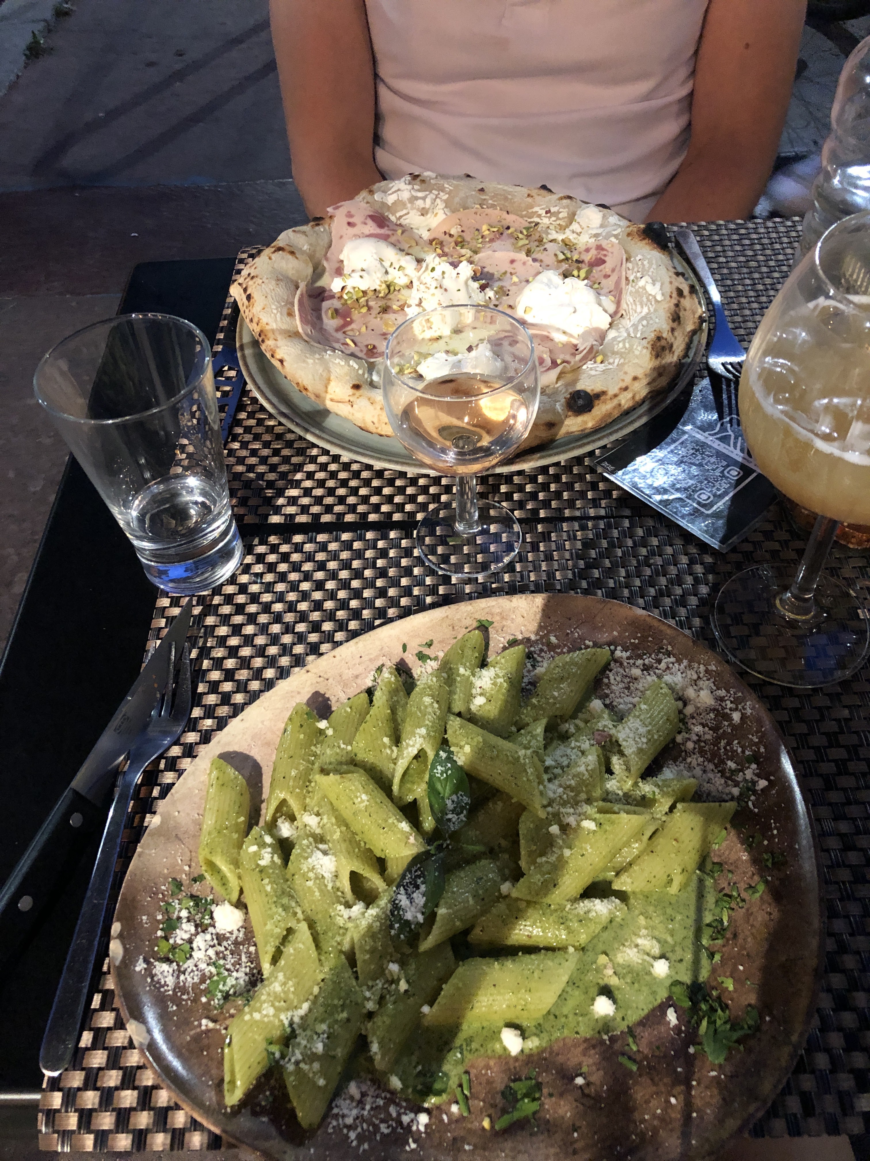 Très bon restaurant italien avec un agréable personnel, une bonne décoration, bonne ambiance un grand espace. possibilité de terrasse à l’extérieur. On a adoré les pates à la pistache dont on ne savais pas l’existence et Très bonne burata sur la pizza