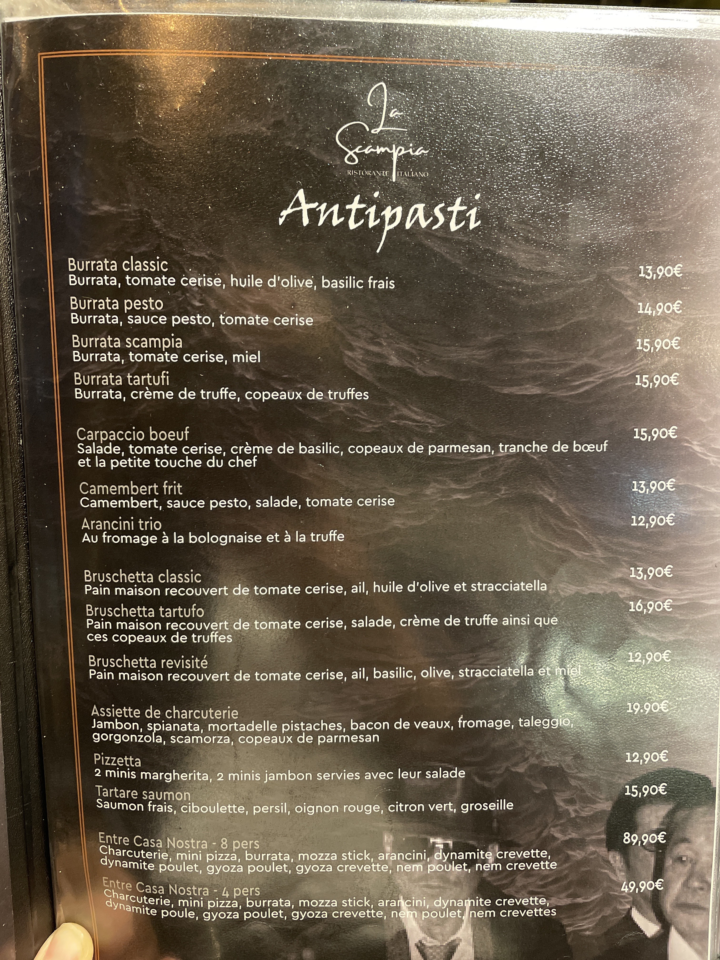 Pour un restaurant de Clichy, dans une petit rue inconnue, le restaurant italien « la scampis » surprend par son style moderne, simple et chic. La porte qui s’ouvre constamment gèle les clients avant que la porte ne soit fermé à clef… surprenant quand on souhaite rentrer pour une réservation. C’est très bon sans que ça soit exceptionnel globalement… dommage que l’ensemble des ingrédients du menu ne correspondent pas à ce que l’on retrouve dans l’assiette… les pizzas meilleures que les pâtes, et le top c’est la pâte des pizza 🤗 L’agencement intérieur est assez étrange, et l’équipe veut bien faire sans forcément assurer. Pensez à réserver par la fourchette, il y a parfois des offres intéressantes.