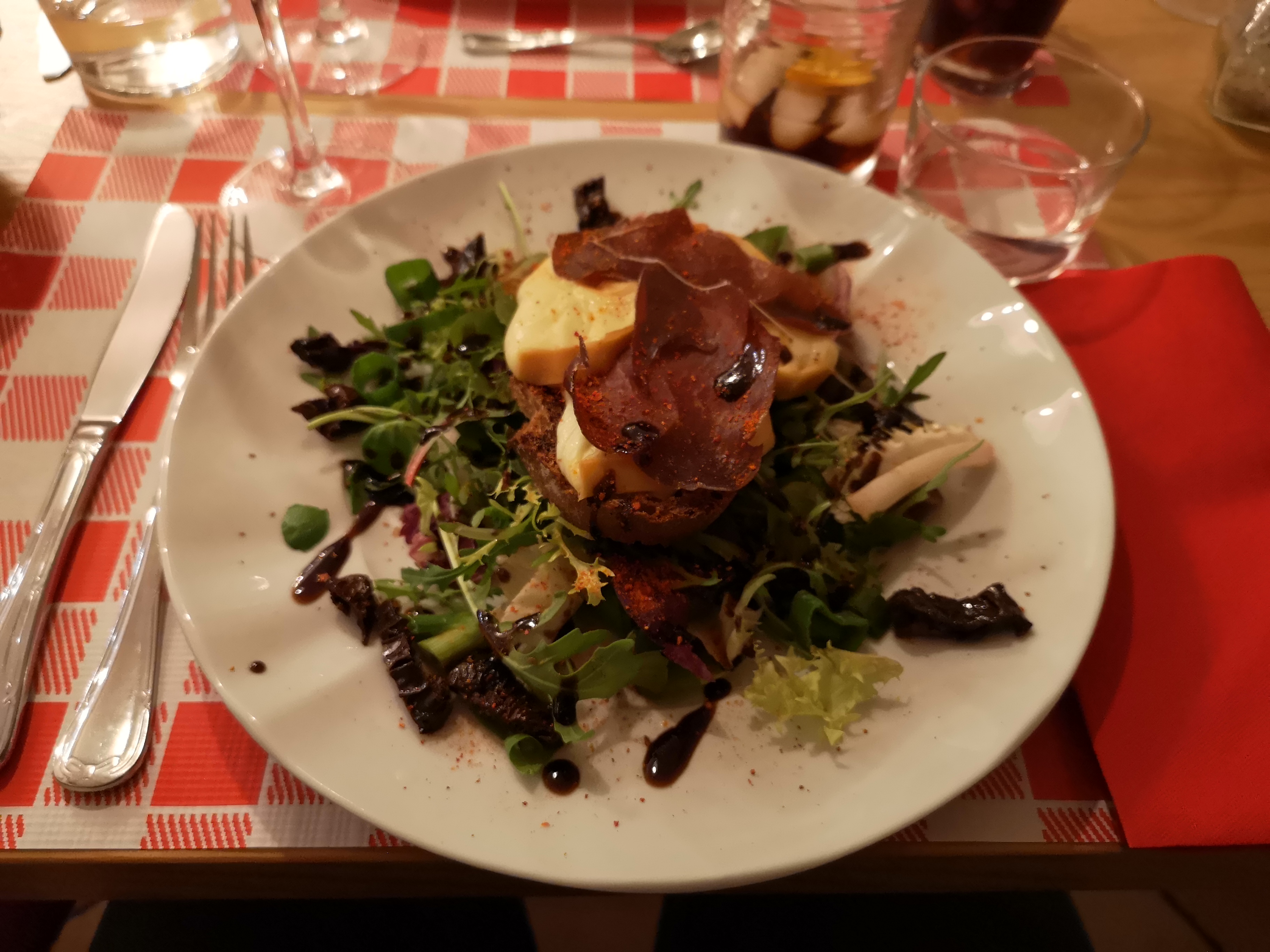 De passage dans la région je m'arrête dans ce restaurant pour le dîner, étant un des rares qui proposent des plats végétariens aux alentours. Bon accueil, il n'y avait pas grand monde. Mon plat est lancé dès l'arrivée, mais j'ai du demandé un verre de vin blanc. Je voulais un sec mais le serveur me dit qu'il n'y a que du fruité, puis m'apporte une bouteille en me disant qu'il est très sec.. Ce qui n'était pas le cas. Le plat arrive en cinq minutes : des pâtes farcies au pesto. Heureusement que j'aime et que je ne suis pas allergiques à la sauce aux épinards et aux amandes qui composent le plat car je n'étais pas au courant. Le repas est bon, mais rien d'exceptionnel. Le chef cuisinier fait une apparation dans la salle pour discuter avec les clients, je trouve ça sympathique et convivial. Le cadre est charmant mais la musique un peu trop forte, on ne s'entend pas. Budget 23 euros pour un verre de vin et des pâtes, un peu cher pour ce que c'est.