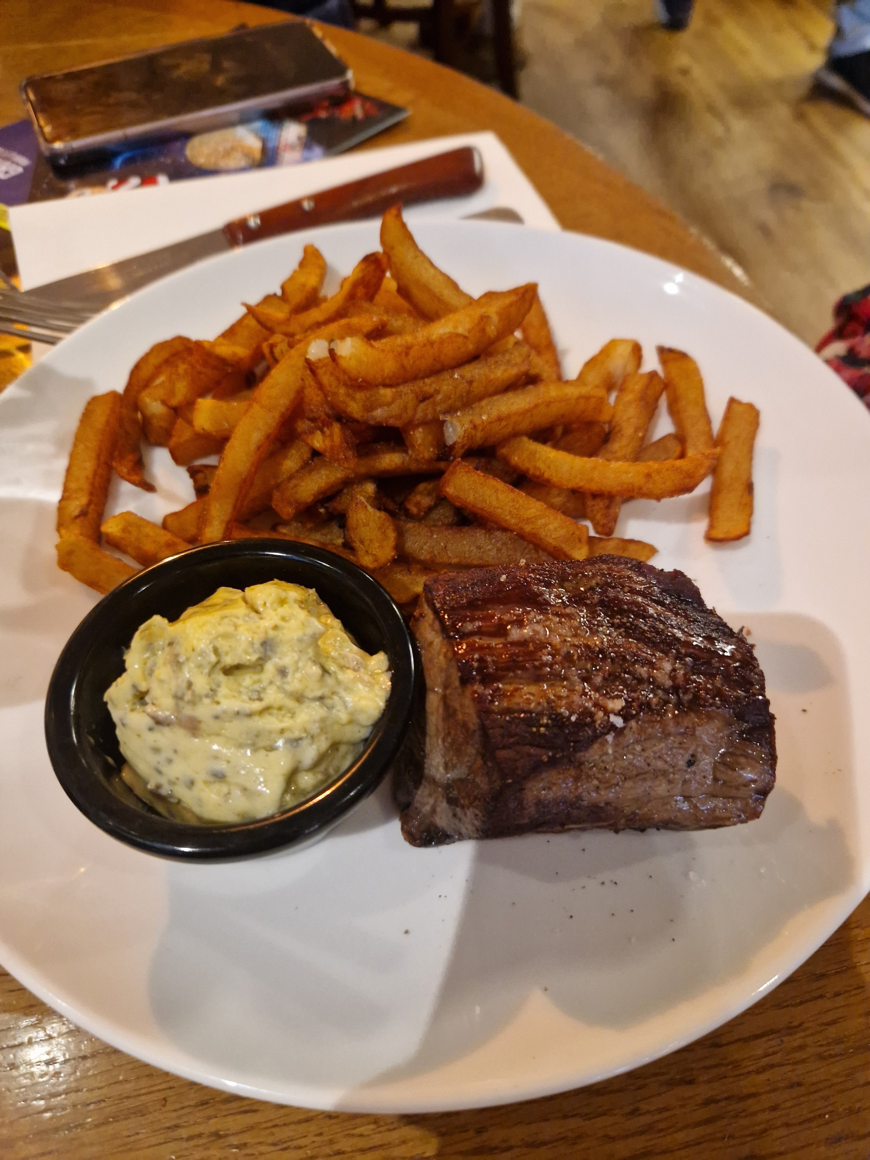 Je ne conseil pas vraiment ce restaurant car la viande de bœuf maturé 5 semaines n'avait pas vraiment de goût et les frites soit disant maison était fade. Le plat à 26 euros me semble beaucoup trop chère pour la qualité dans le plat et la quantité vraiment trop juste. Par ailleurs pas de sel ni poivre sur la table et le pain de qualité médiocre. Les couverts n'etais pas très propres. Seule le vin proposé été bon.