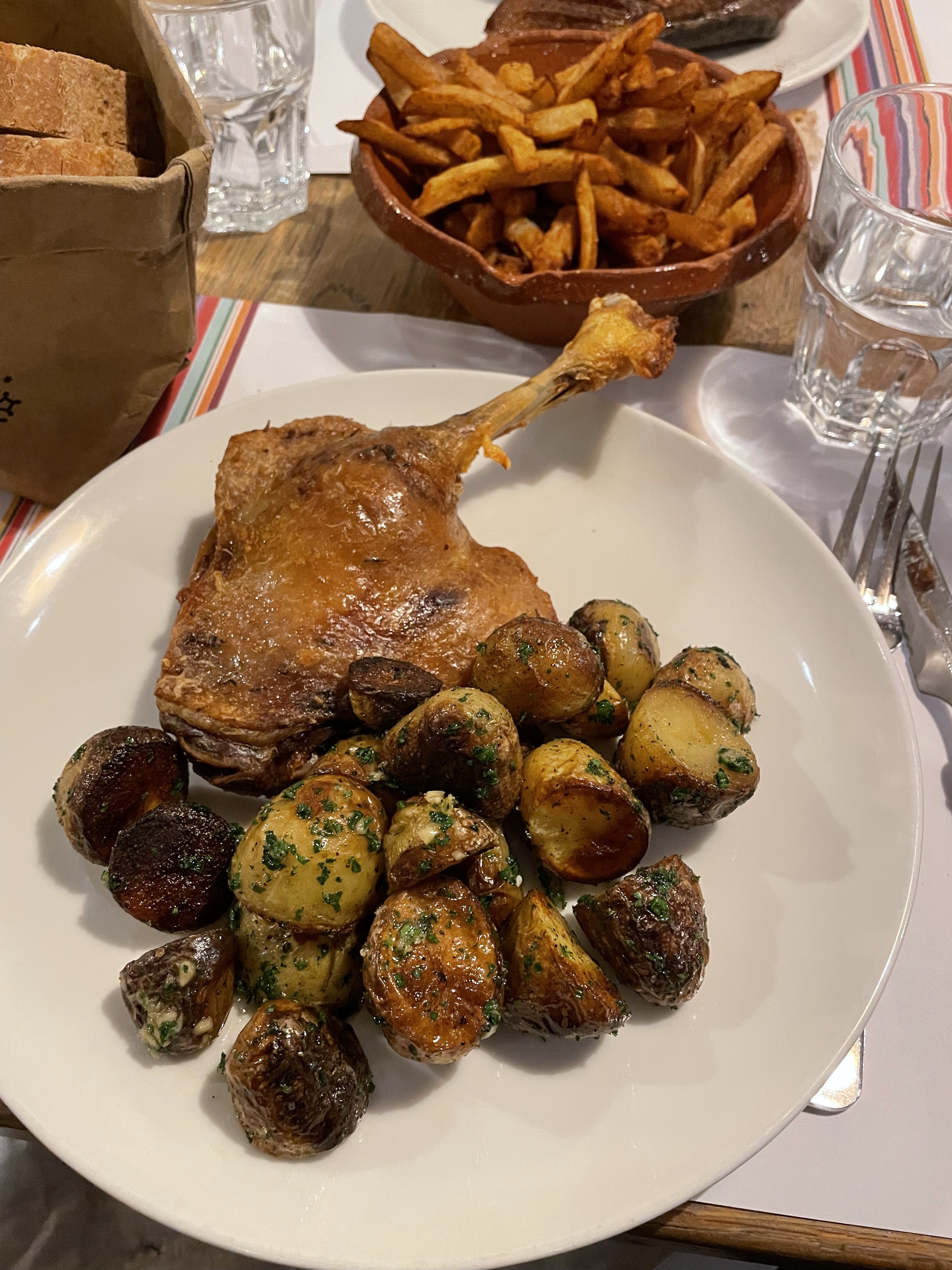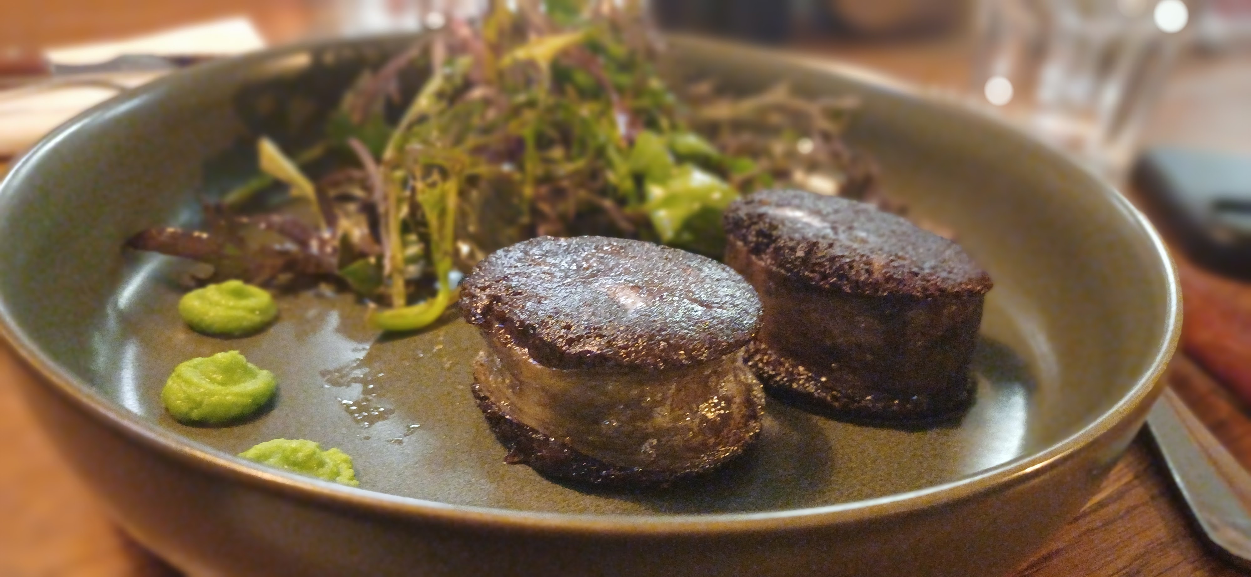 Avec Gigot, on en fait un jeu de mot pour le meilleur de la viande. Une cuisson bleue impeccable, des frites et une bearnaise top. Un petit craquelin pistache pour finir et hop bonne soirée ! Franchement, pour la viande rouge ou blanche, j'y vais !
