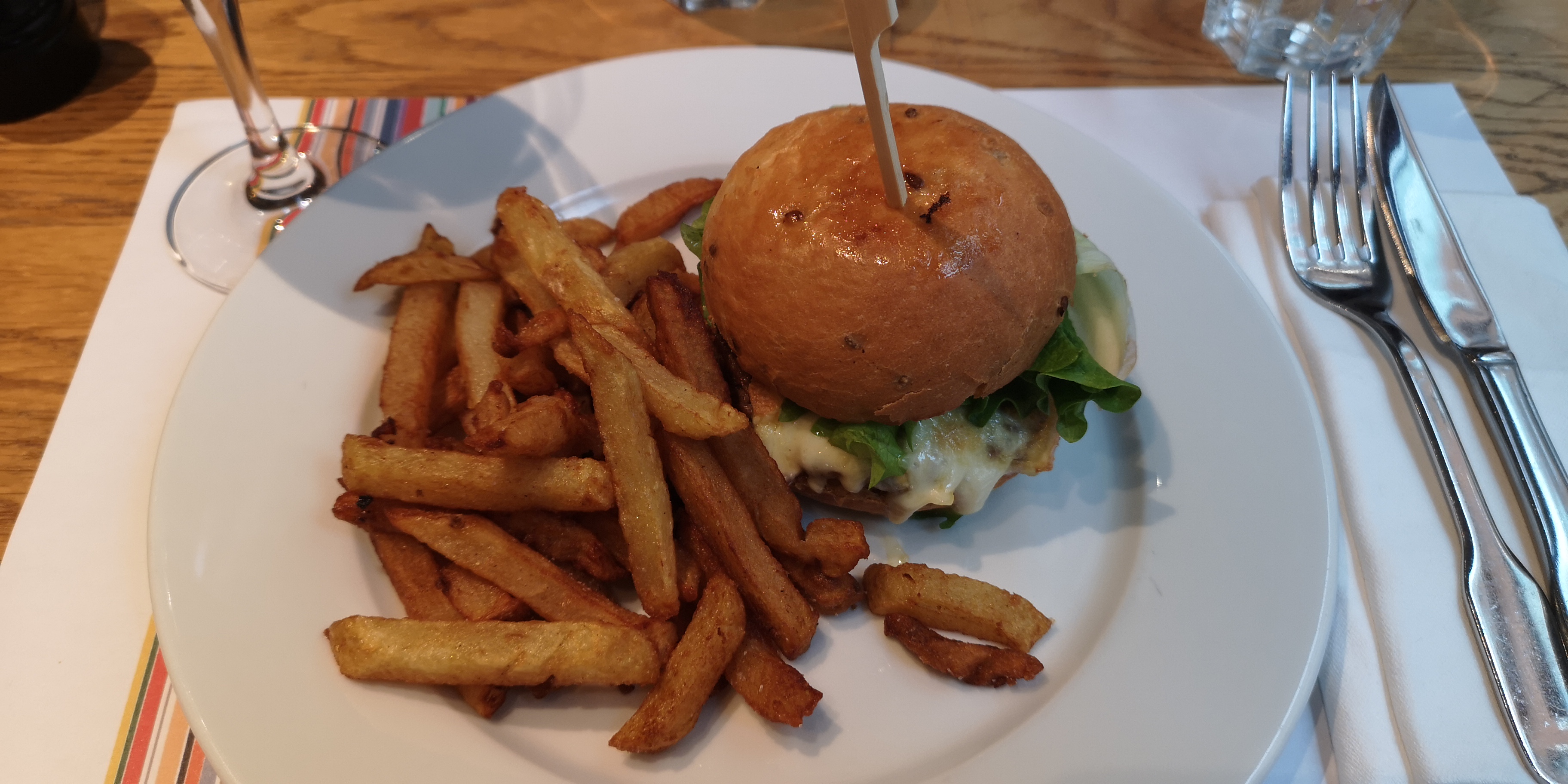 Le cadre est joli. Les seveueurs sont accueillant. Les prix sont vraiment hauts. J'ai pris un burger s'effiloché de bœuf avec des frites et un gqrlic bread, Le burger était bon peut être un peu plus de viande aurait été un plus. Les frites sont excellentes, je vous les recommandes. Le gzrlic bread était excellent et avec du goût. Déçus par le pain, il n'avait pas de goût. Pour le dessert, profiterole, je suis souvent déçu, il y a toujours un truc qui ne va pas, Pour celles ci, le chocolat, bon, la glace excellente, mais le chou était trop sec, dommage.